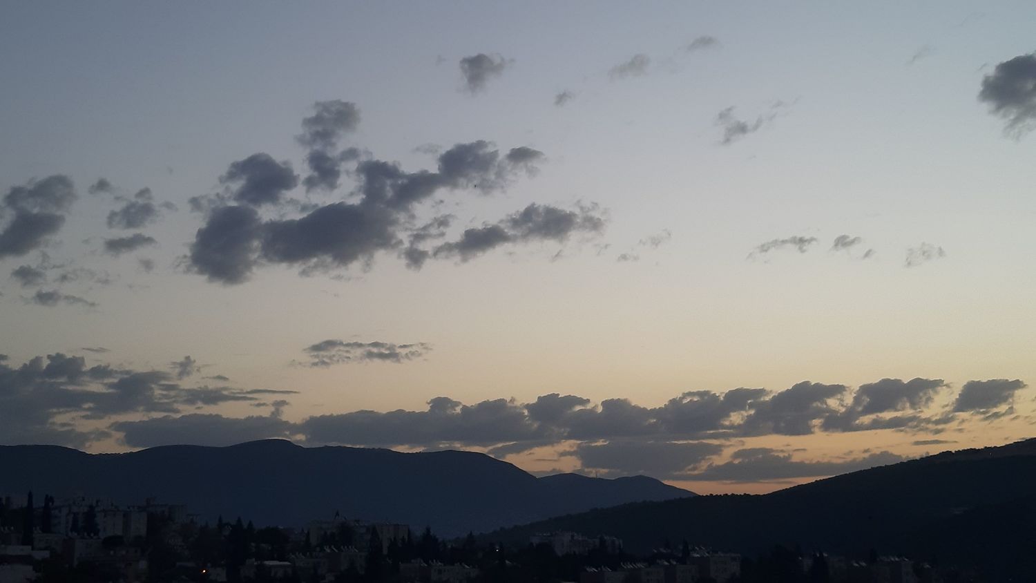 לאט לאט מהצהריים המוקדמים עד עכשיו בעננות בינונית, אחריה בעננות גבוהה וכעת הן מעורבות במעט עננות נמוכה.