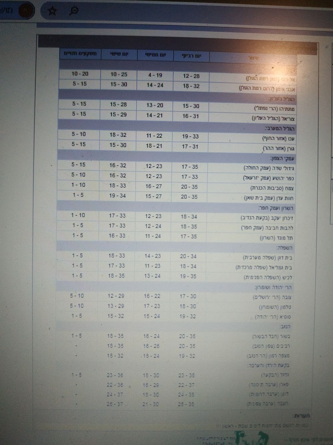 אני חוזר רגע לטבלת הכמויות, אני אף פעם לא מבין את עניין הימים המוצגים, מוצגים ימי רביעי עד שבת אך בפועל צפוי גשם רק בסופ''ש, אומנם יש הערה למטה שכתוב בה שהכמויות הן לגבי שישי-שבת אז מדוע זה מוצג ככה?
