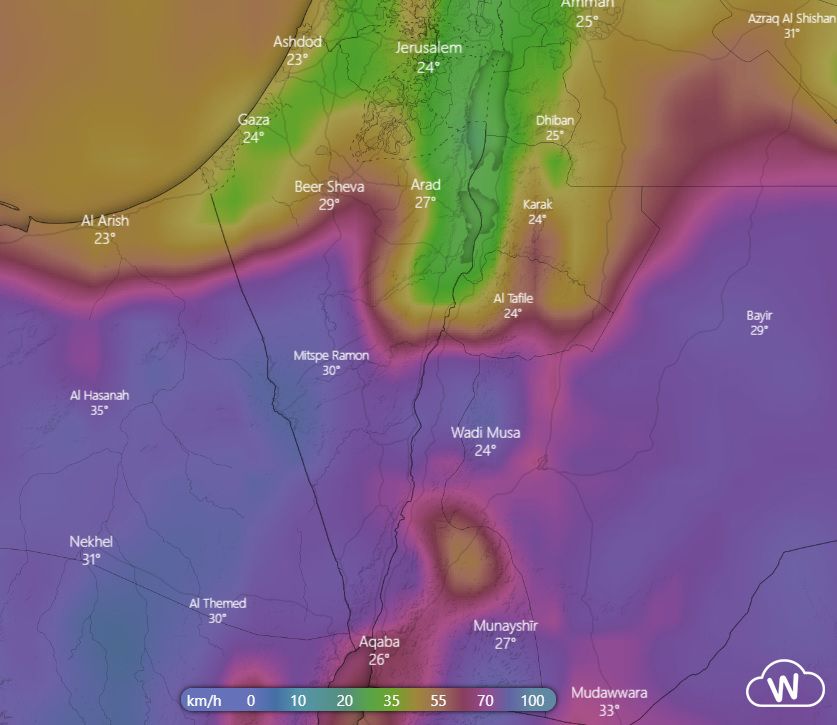 - עוצמת משבי הרוח בשיא לקראת שישי בערב Weather2day