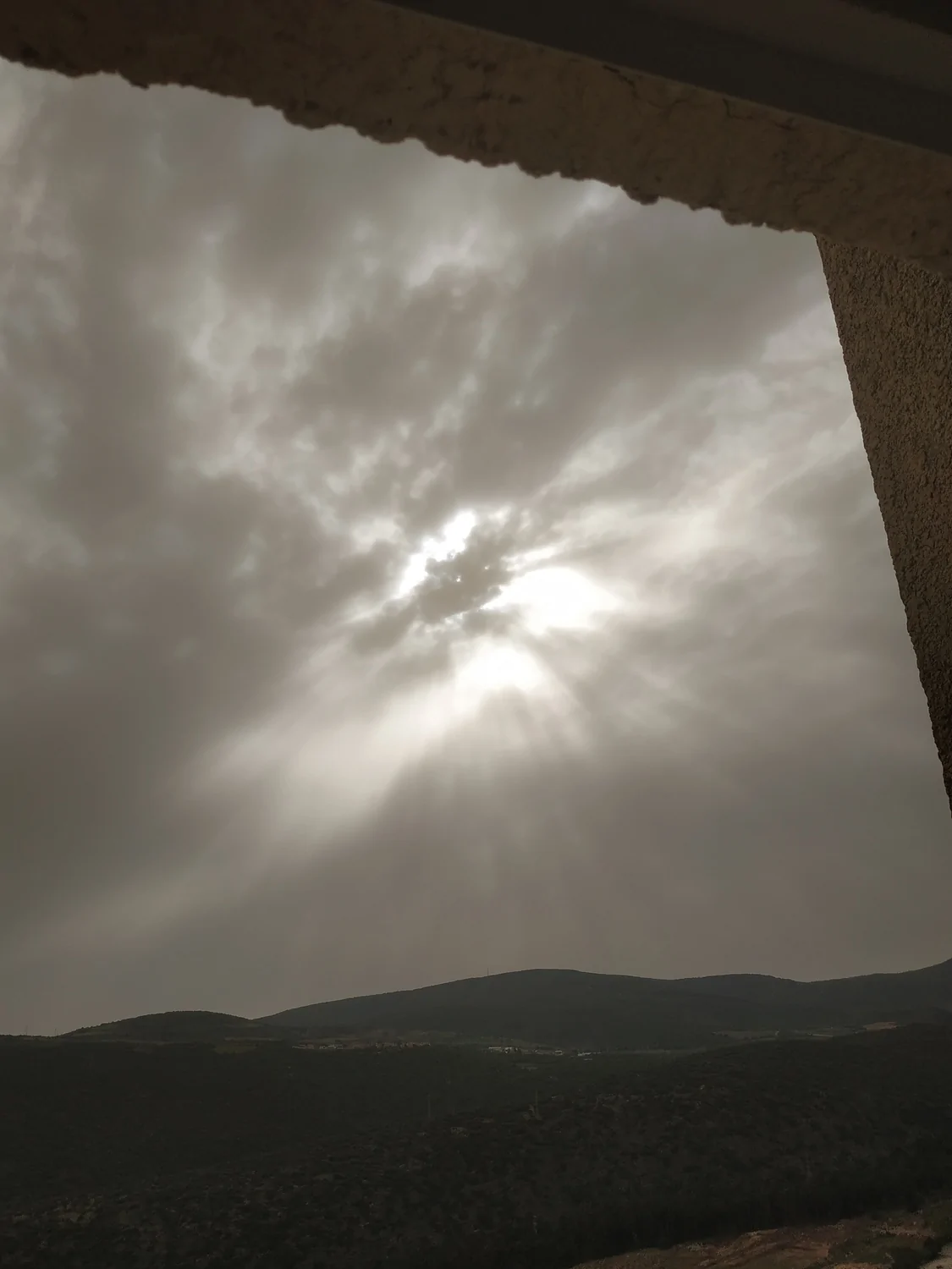 למי שמתעניין, "הגבעה" המופיעה בתמונה השנייה משמאל לגג הרעפים היא הקומפלקס של הר בנטל והר אביטל במבט מצפון. הצילום בנייד קצת מגמד את האובייקטים המצויים רחוק, בפועל הנוכחות של שני אלו בנוף היישוב חזקה יותר.