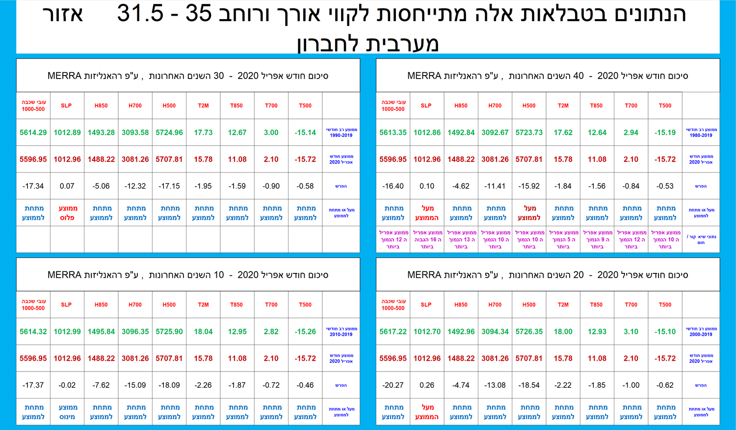 סיכום חודש אפריל 2020 ע"פ רהאנליזות MERRA- קווי אורך ורוחב – 35 – 31.5