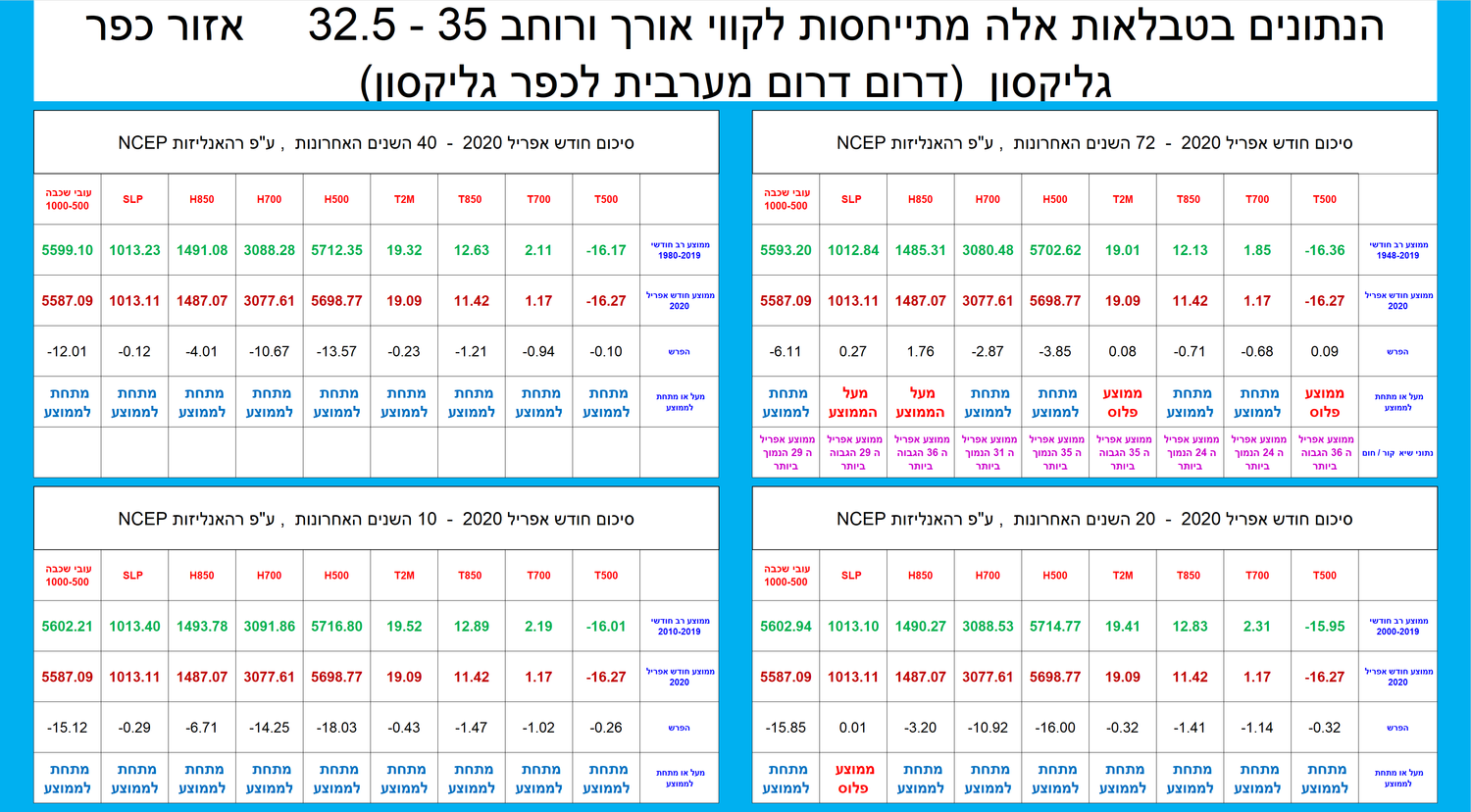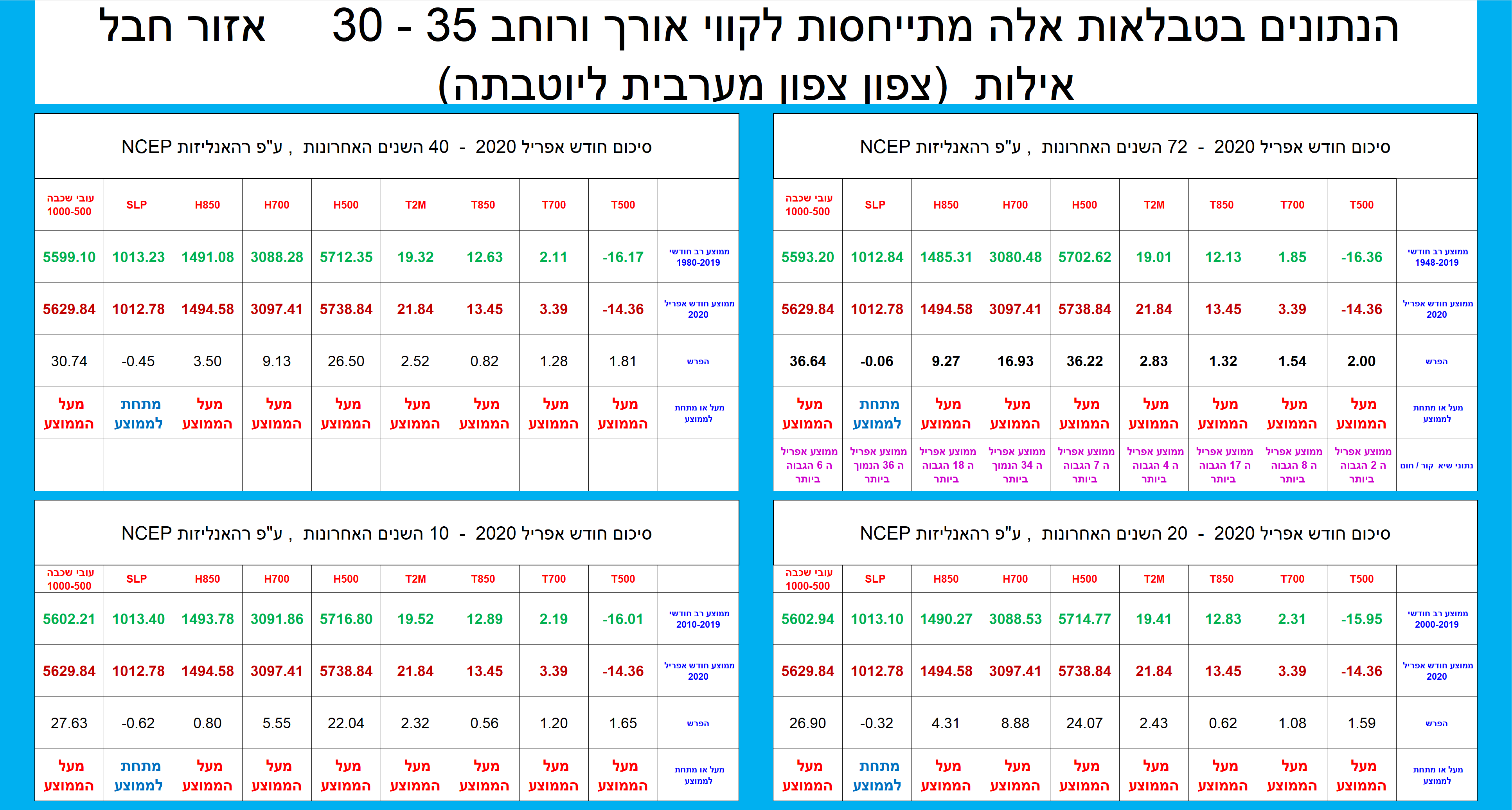 סיכום חודש אפריל 2020 ע"פ רהאנליזות NCEP קווי אורך ורוחב – 35 – 30