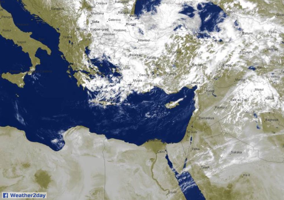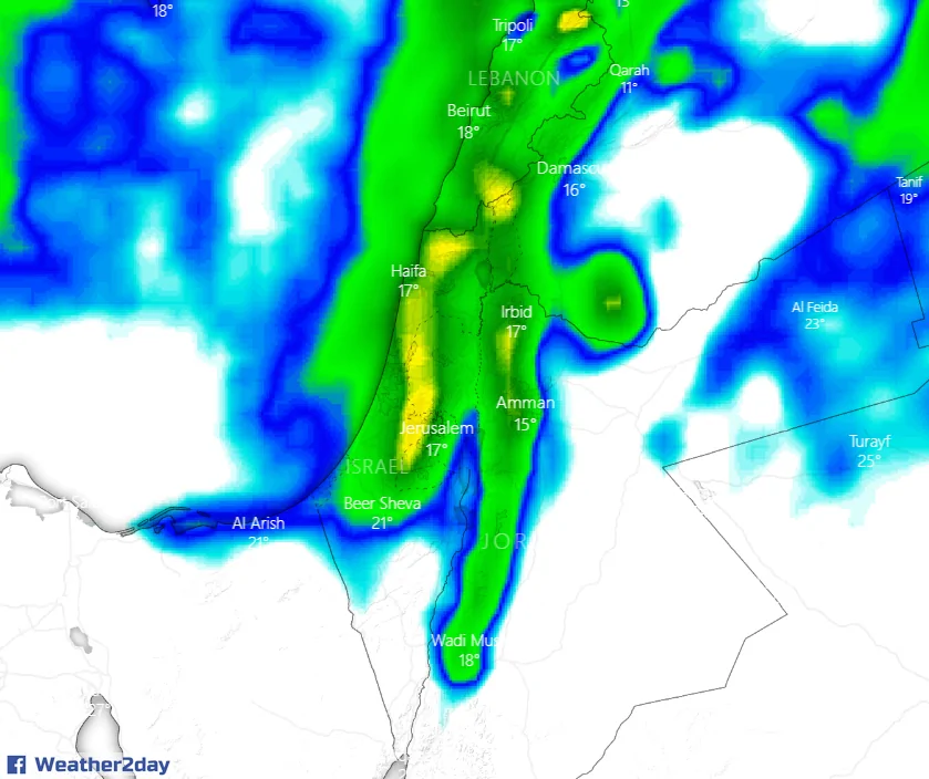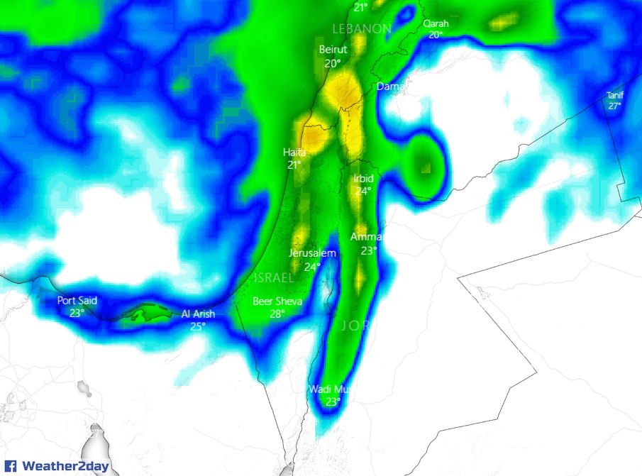 - תמונת מצב מהלווין וצפי משקעים מעודכן ECMWF Weather2day