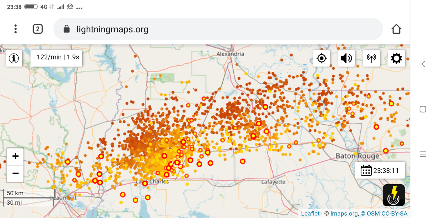 - שיא הסופה הוא ב- Lake Charles חנוך א