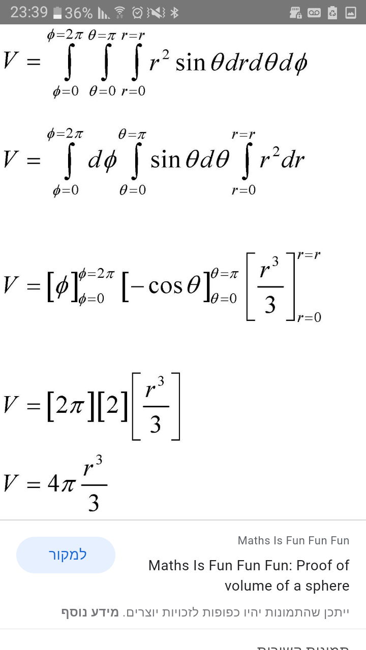 נפח כדור: 4 כפול 3.14 כפול הרדיוס בחזקת 3, כל זה חלקי 3.