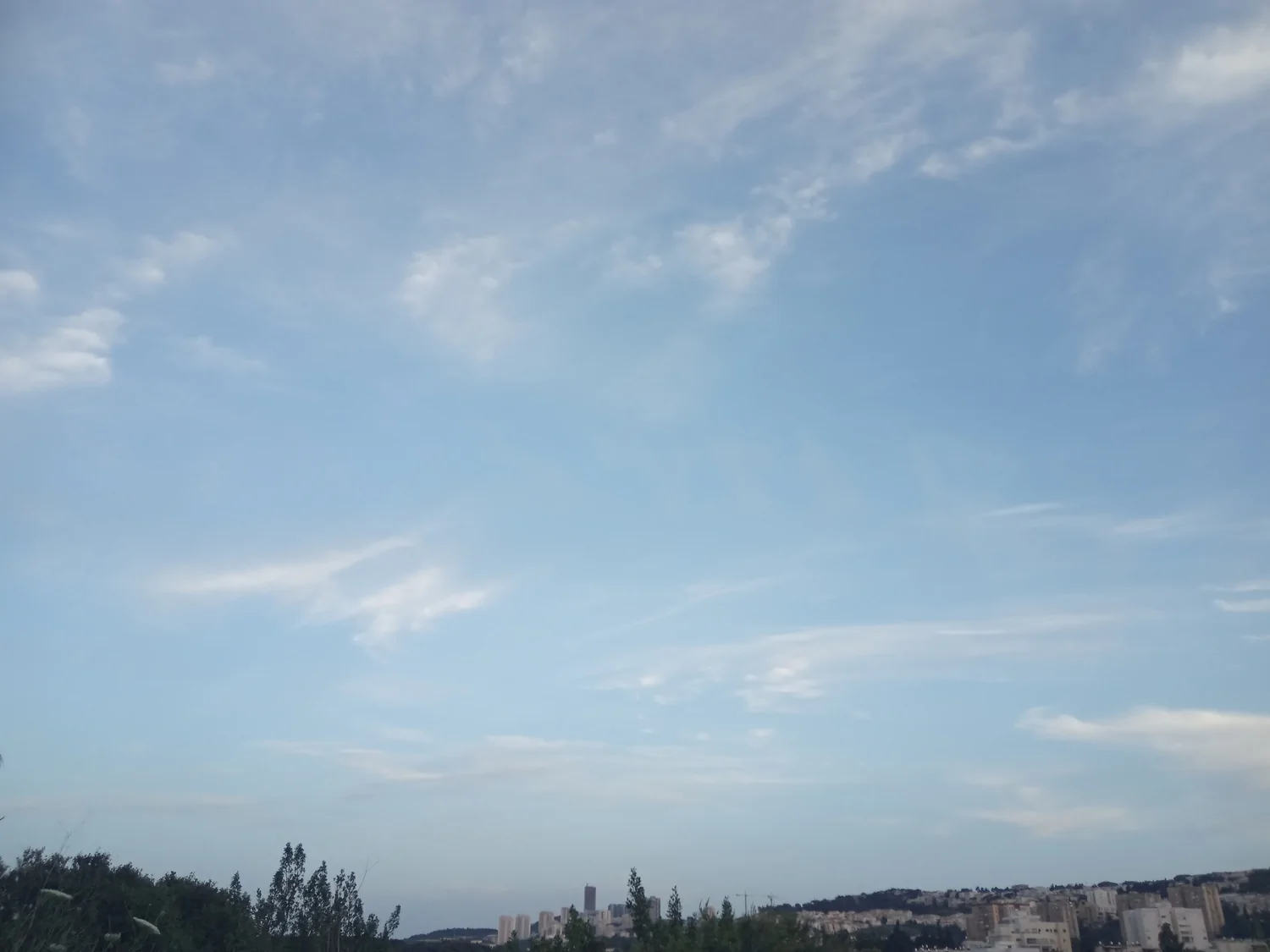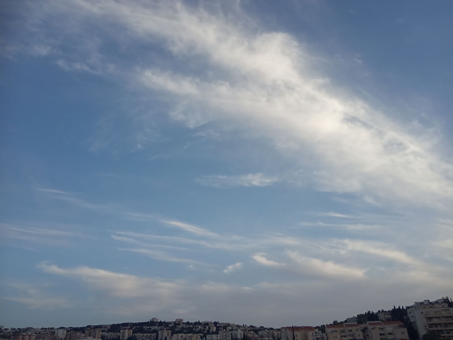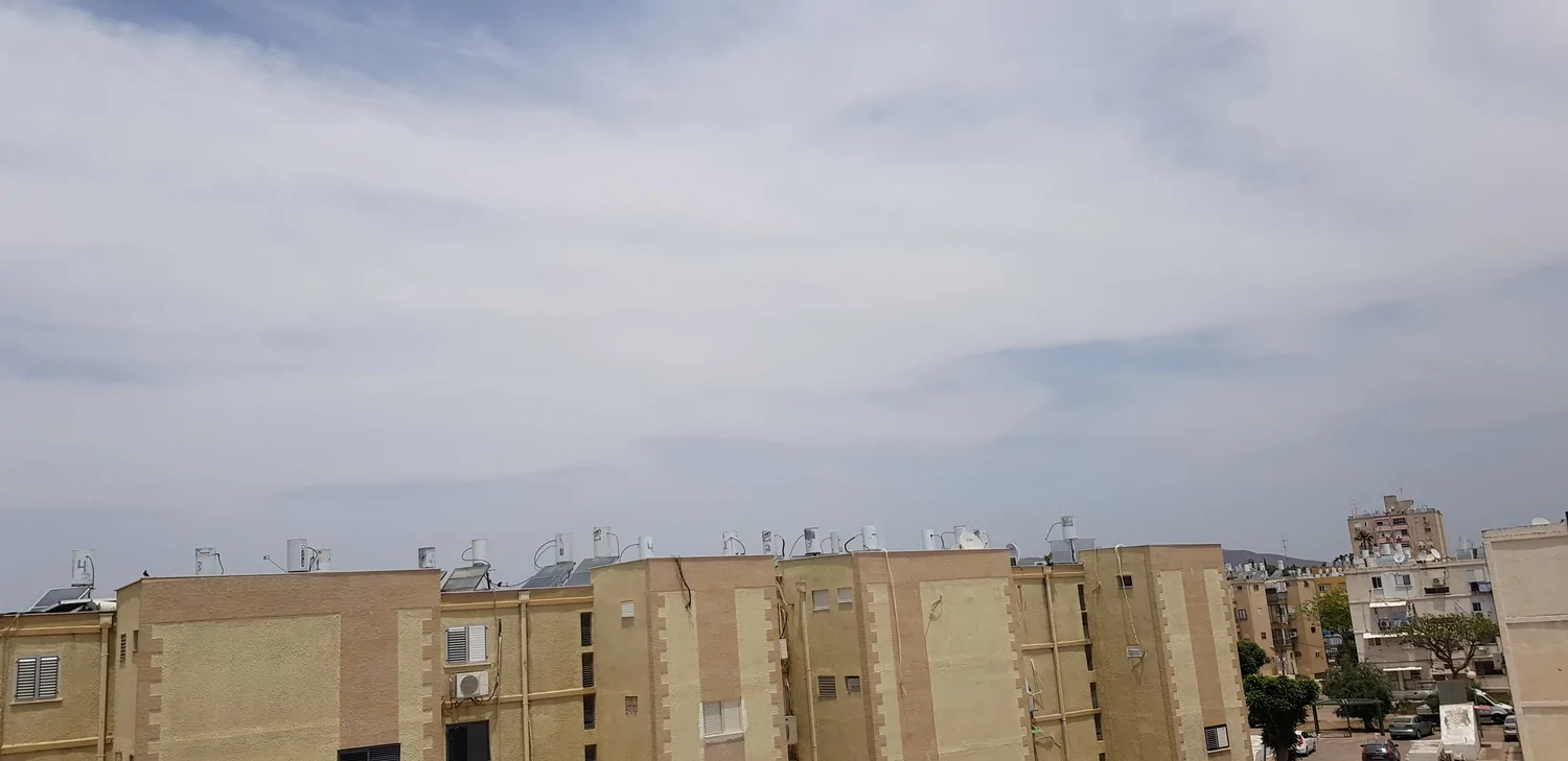אותם עננים שהשבוע ציינתם את שמם - צירוסטרטוס. כעת, לראשונה העונה, הגענו פה ל-30° אך בינתיים הבריזה הימית מצליחה עדיין להשפיע והחום נסבל לגמרי. כעת 30° עם 46% לחות, עומס חום כבד