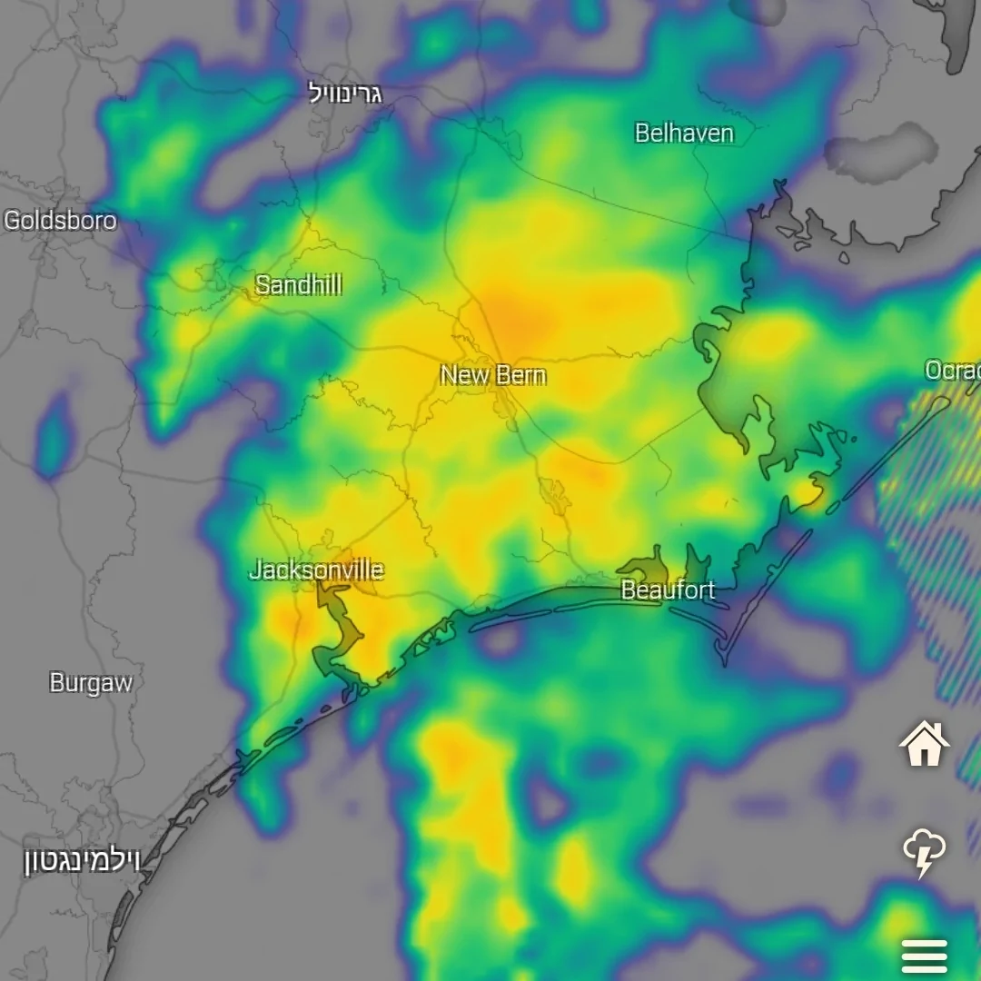 - חופי צפון קרולינה חטפו עד כה 50-80 מ''מ חנוך א
