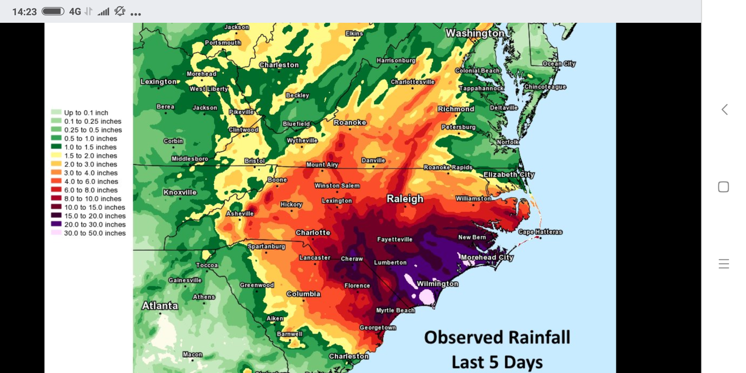 לא למה שקורה במרכז ארה"ב שזה לא רלוונטי לצפון קרולינה, אלא להוריקן פלורנס שבו היו מקומות בחוף צפון קרולינה שחטפו מטר גשם תוך כמה ימים