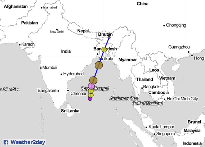 הסופה נעה לכיוון צפון ונראה שהפגיעה תהיה בעוד 3 ימים באיזור כלכותה (Kolkata), הודו.