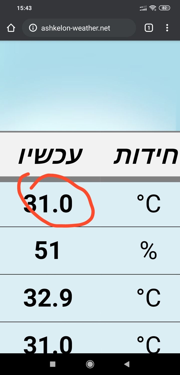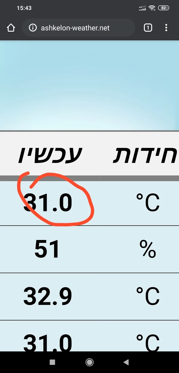 גלגל אתמול ב-9:30 ,38 מעלות .היום ב-9:30 40 מעלות