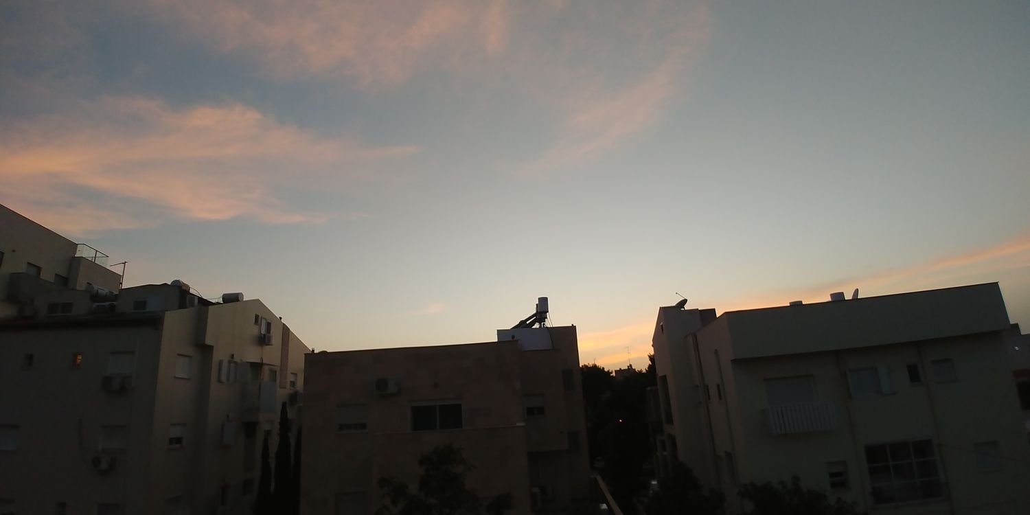 אני עדיין נדהם מכך שאחרי יום לוהט עם מקסימום של 40° הטמפ' צנחה עד 21° ועוד צפויה לרדת אל מתחת ל-20°, לפחות זה, ז''א הייתי בטוח שכמו שחמי מת''א מדווח גם פה נישאר צמודים ל-30°.