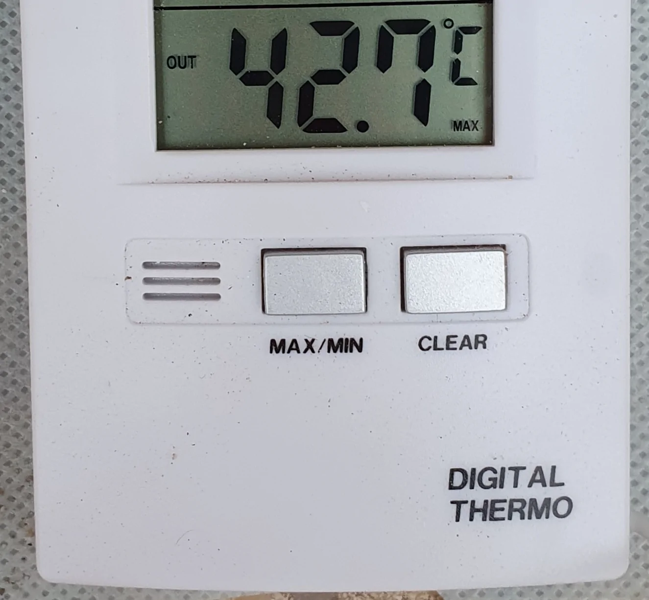 שנמדגו "רק" 42 מעלות... אבל הלחות עלתה מאתמול 15% ל 22% היום.... וזה משמעותי