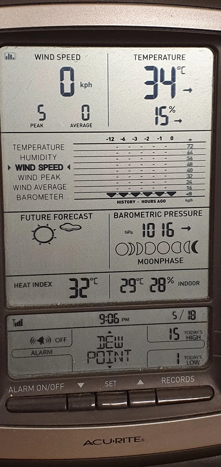 כעת רק 20° עם 80% לחות, אני עדיין בהלם מהצניחה הזו, לקראת עוד יום לוהט וקשוח מחר (שזה כבר היום) שצפוי להיות שיא גל החום, מעניין יהיה לראות האם נגיע ונחצה את ה-42° שזה, למיטב זכרוני השיא פה, אם אני טועה אשמח לתיקון דבריי