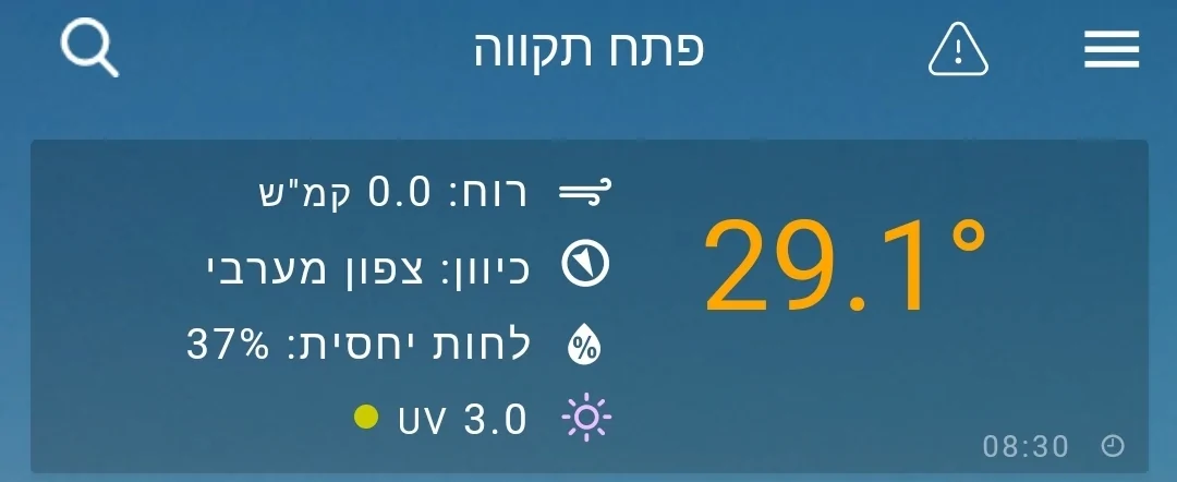 - הגיוני שבפתח תקווה 29° כעת ? צפוי היום שרב ? אלון