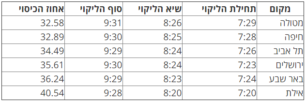 - זמני הליקוי לפי ערים: דני,תלתל הנודד