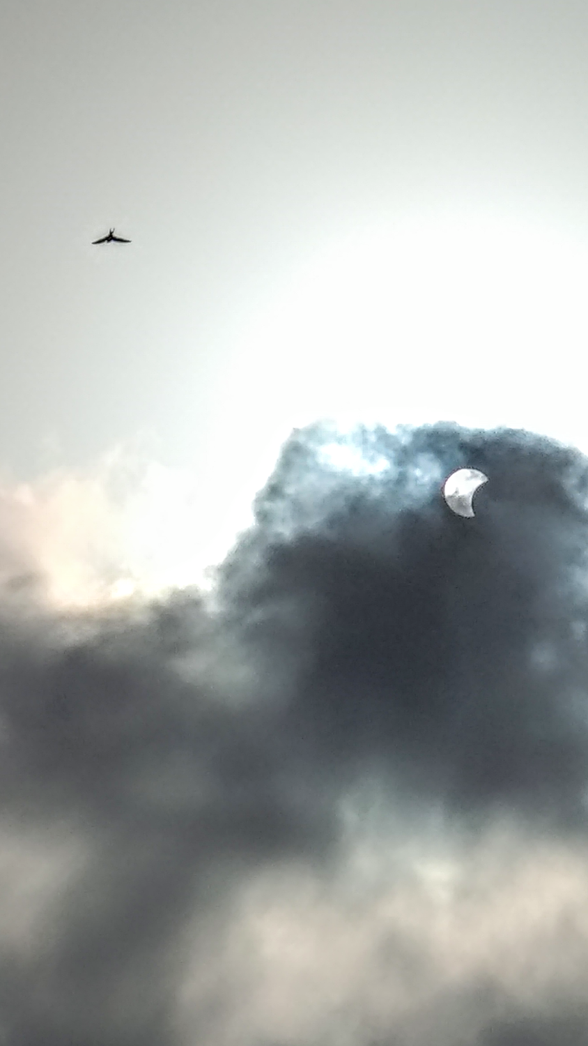 - ליקוי חמה מהחלון מבעד לענן ולצידו ציפור הסיס. טל סמנון