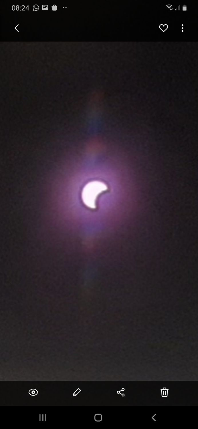 חבקוק #9 הליקוי באמת לא הורגש, פרט לירידה בעוצמת הקרינה האולטרא סגולה של השמש, תמונה יפה מאד של השמש הלוקה