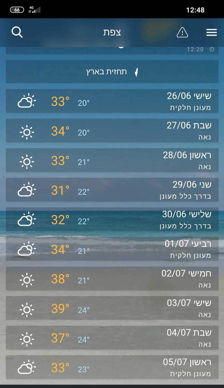 - דיווחי מזג אוויר - יום חמישי 25/06/2020 אליחי
