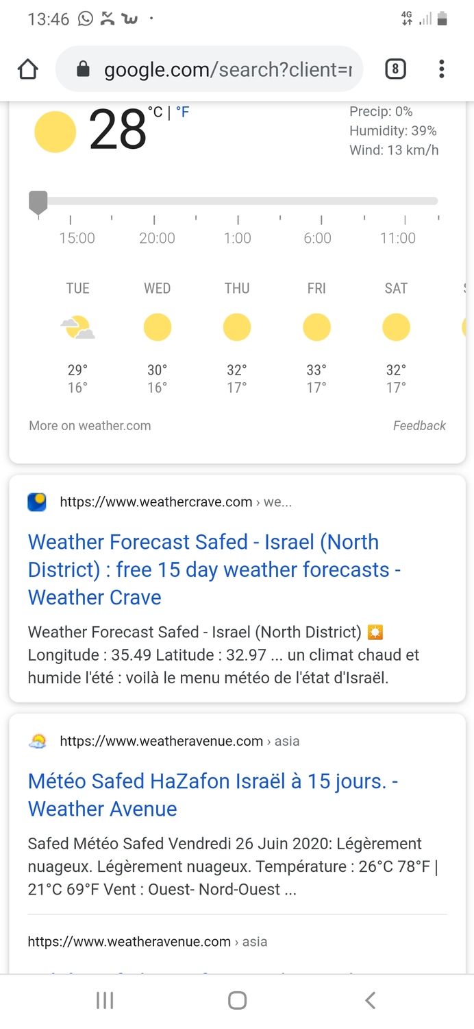 - שום תחזית לא מראה על טמפרטורה שגבוהה יותר מ 32° בצפת אילן