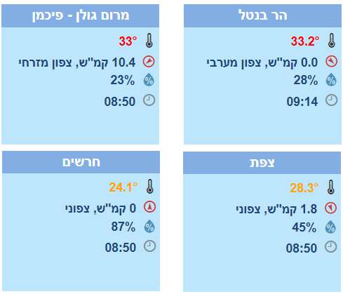 צפון הגולן יותר חם הבוקר מאיזור אילת.