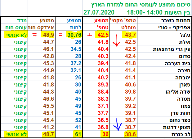 - סיכום עומסי החום בערבה, בבקעה, ובכנרת. איפה היה הכי לא אנושי !? יהודה א