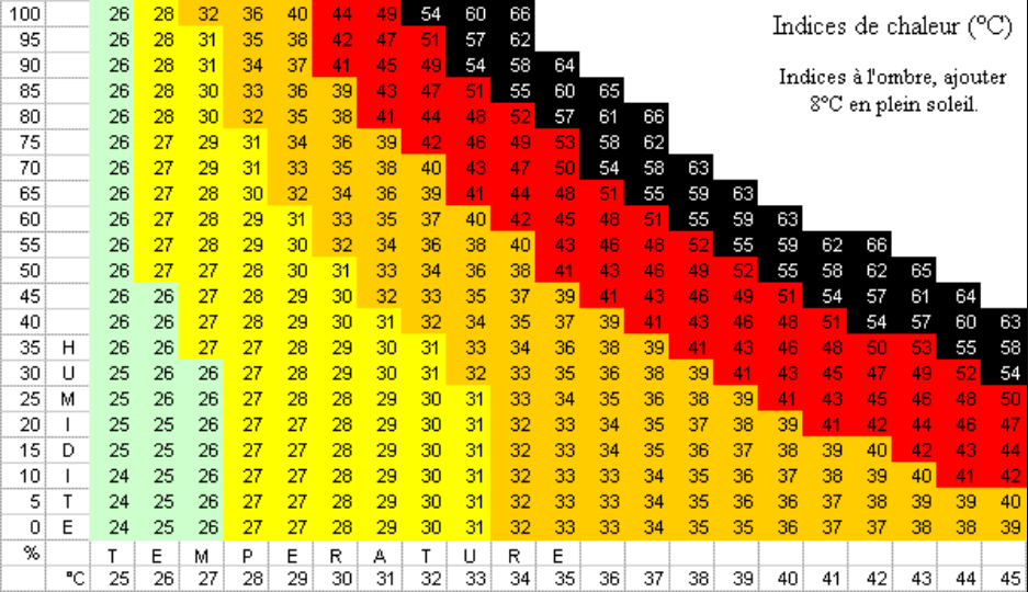 - טבלה של אינדקס חום. שילוב טמפרטורה ולחות... יהודה א