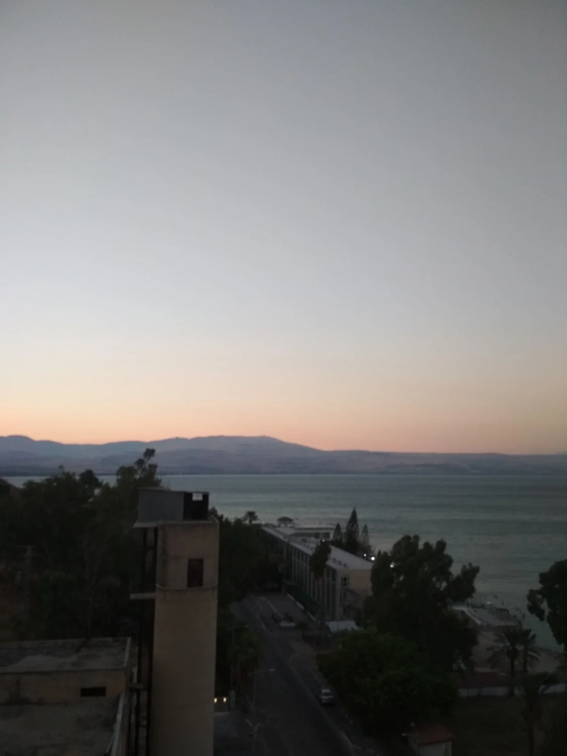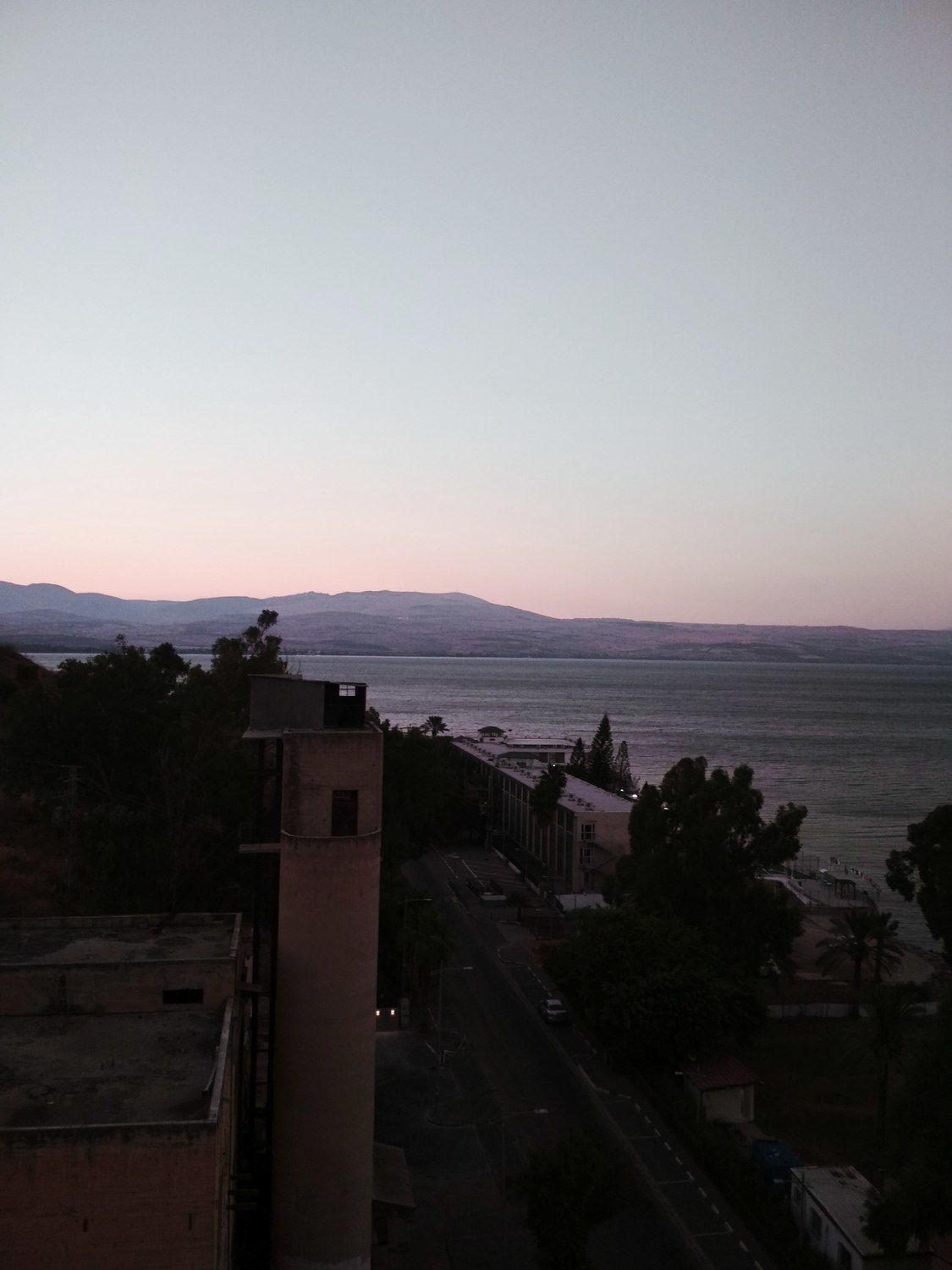 - קצת אחרי השקיעה ברקע הכנרת אלון