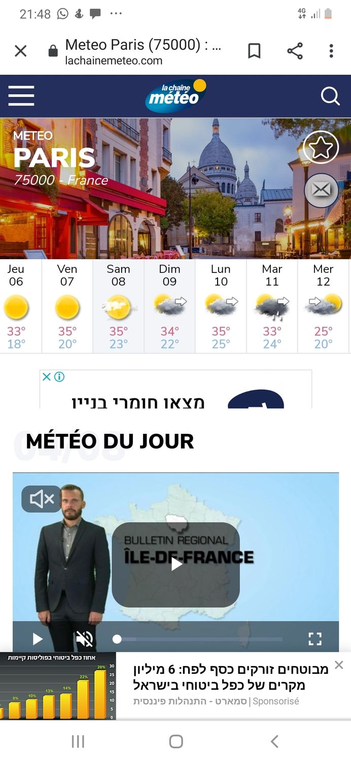 - לעת עתה השירות המטאורולוגי הצרפתי צופה עד 37° בפריז ועד 38° בפרוורי העיר אבי (פרדס כץ)