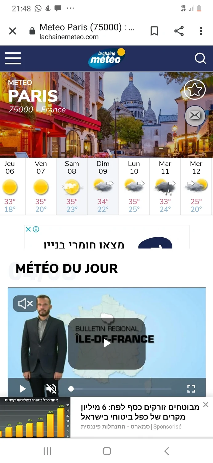 כרגע עלייה חזקה בטמפרטורות בפריז לפני שעה היו שם 16 מעלות עד אחר הצהריים יגיע ל35