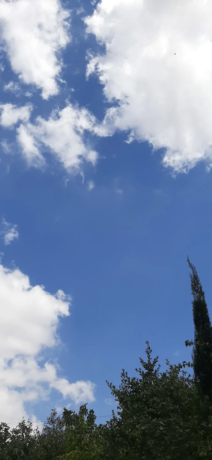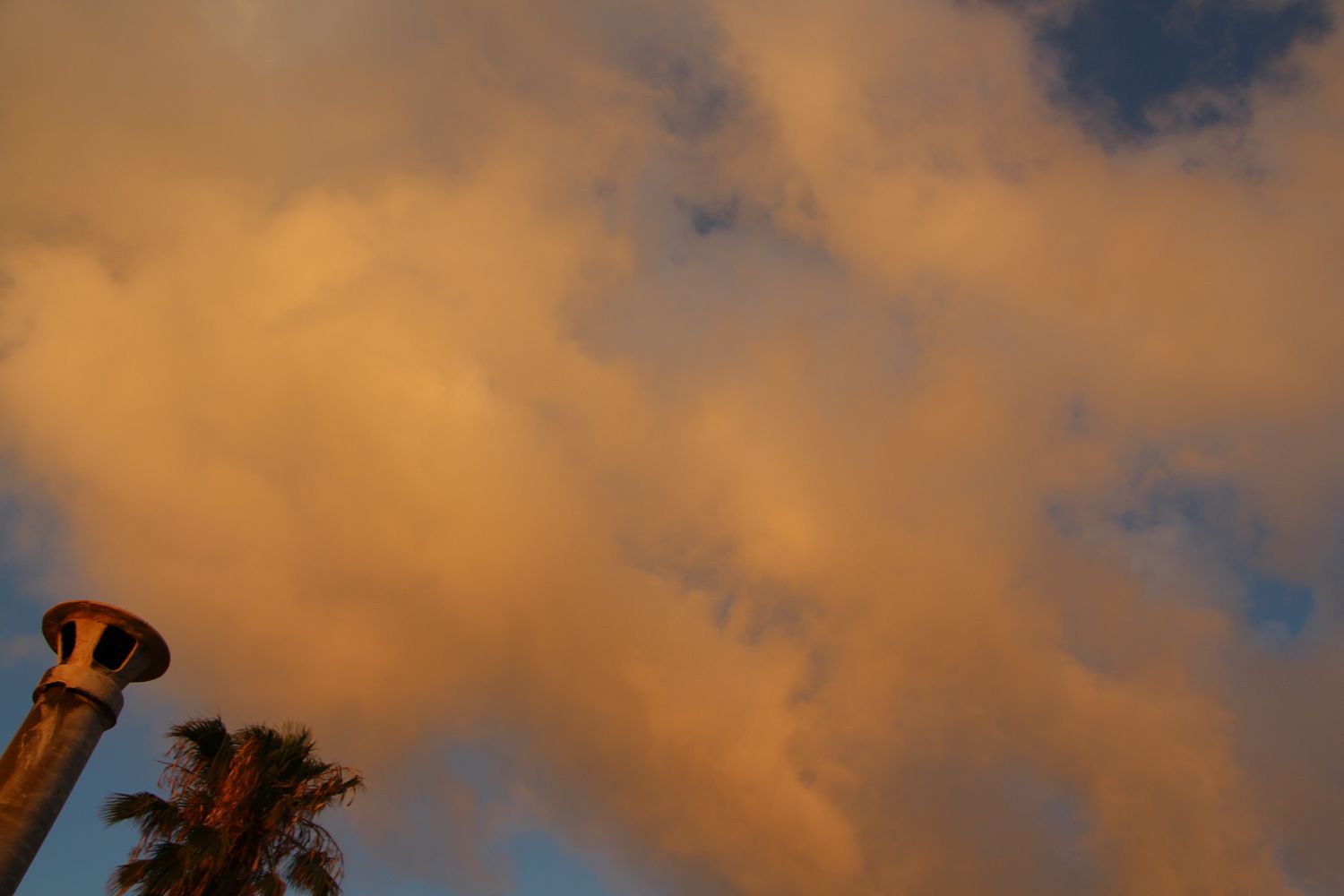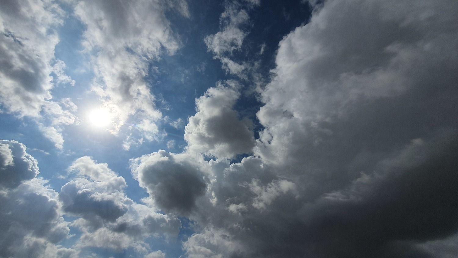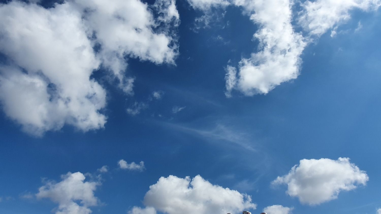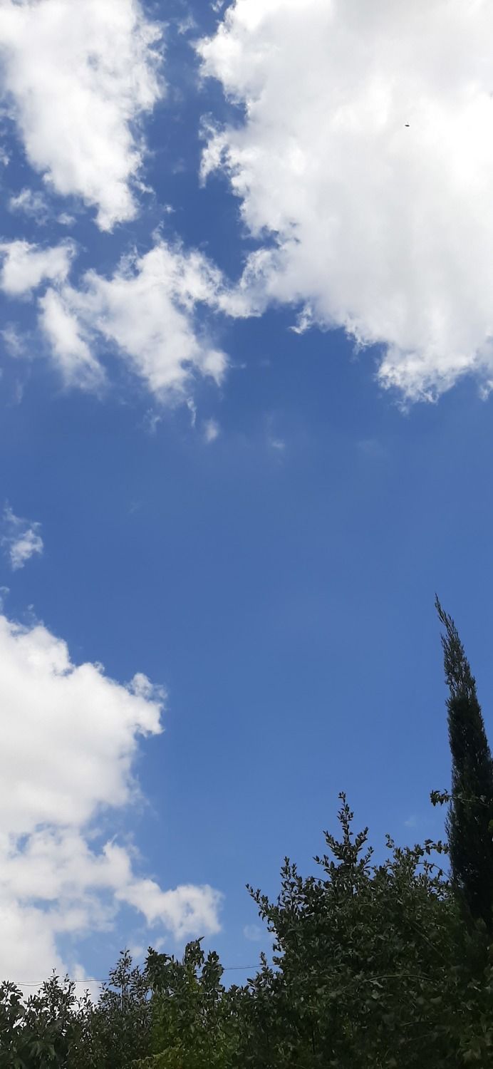 - חם מאוד בחוץ עם שמיים בהירים בעיקר, קצת עננים משייטים להם שם למעלה אבי (פרדס כץ)