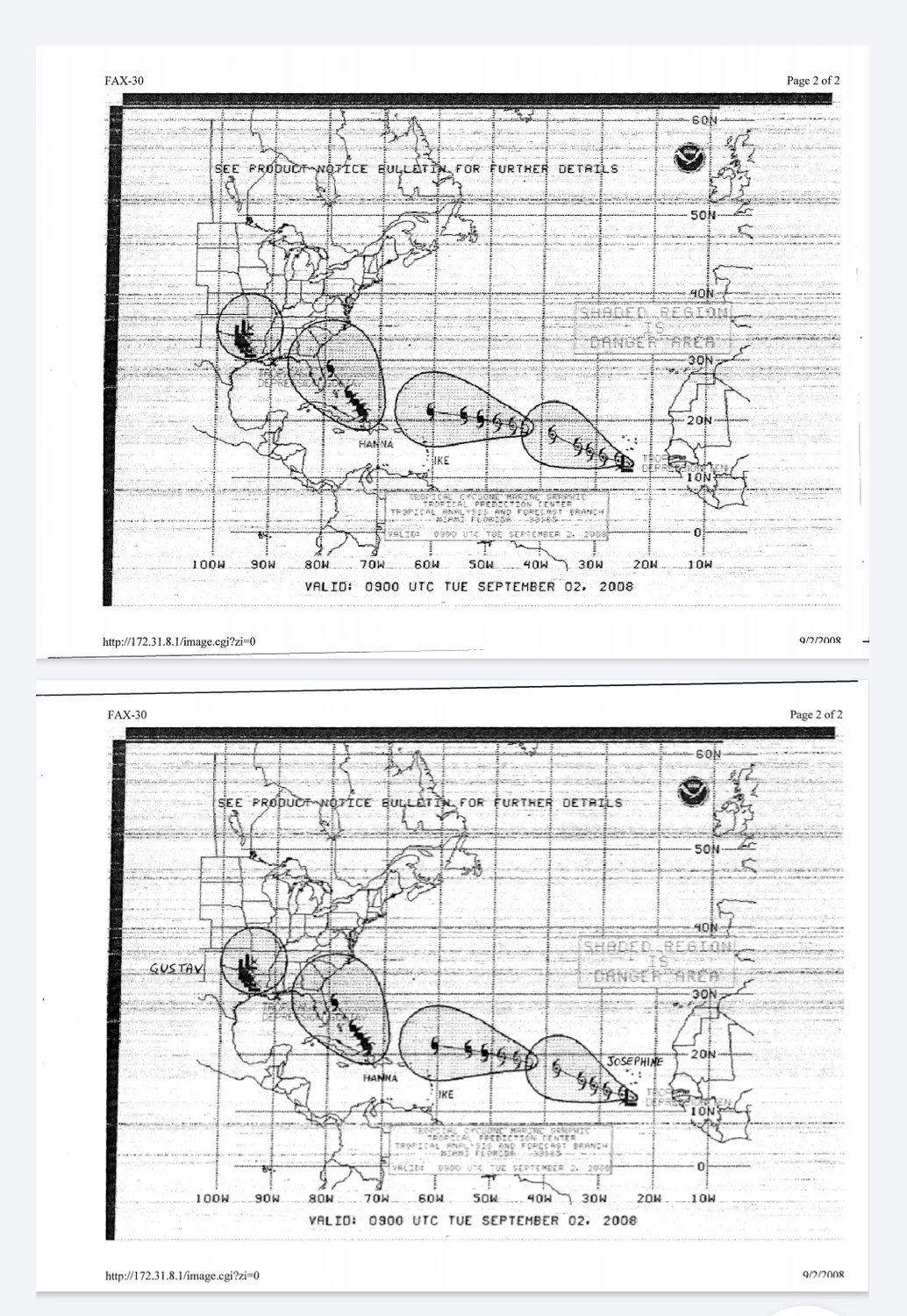 הייתי על האונייה צים קינגדאו.בדרך מנמל קינגסטון שבגמייקה, לכוון סוואנה גיאורגיה ארה"ב. ביציאה מנמל קינגסטון,כבר קיבלנו אתראה שבארה"ב העלו רמת אבטחה לדרגה 4. כבר ביציאה מהנמל בקינגסטון,חווינו גלי גיבוע בגובה 5 מטרים. דבר נדיר לכשעצמו במרחק כזה ממרכז הסערות. החלטה נבונה שלי היתה לעגון בקרבת הנמל עד יעבור זעם. הזעם הזה לקח 4 ימים.ולא עזר,כי היינו צריכים לזנב בהוריקאנים שכולנו יודעים שחלק מהם מתנהג כמו text booker, כלומר כמו שלומדים בספרים,כלומר,שהם מקבלים את החום אנרגיה של 26 מעלות לפחות ולעומק של 100 מטרים,מה שגורם להם להתעצם ולזרום לכוון פלורידה ומשם לקבל את האנרגיה מזרם הגולף ומשם לכוון ניו יורק וקנדה. ואנחנו מזנבים בסערות עד להגעה לסוואנה, שעברה קילוף רציני של הגגות,והעצים השורשיים.חווייה שלא שוכחים. הראייה....צילום פקס של הסערות.ומחשש של עין רעה.....לא מצלמים בסערות! !!!