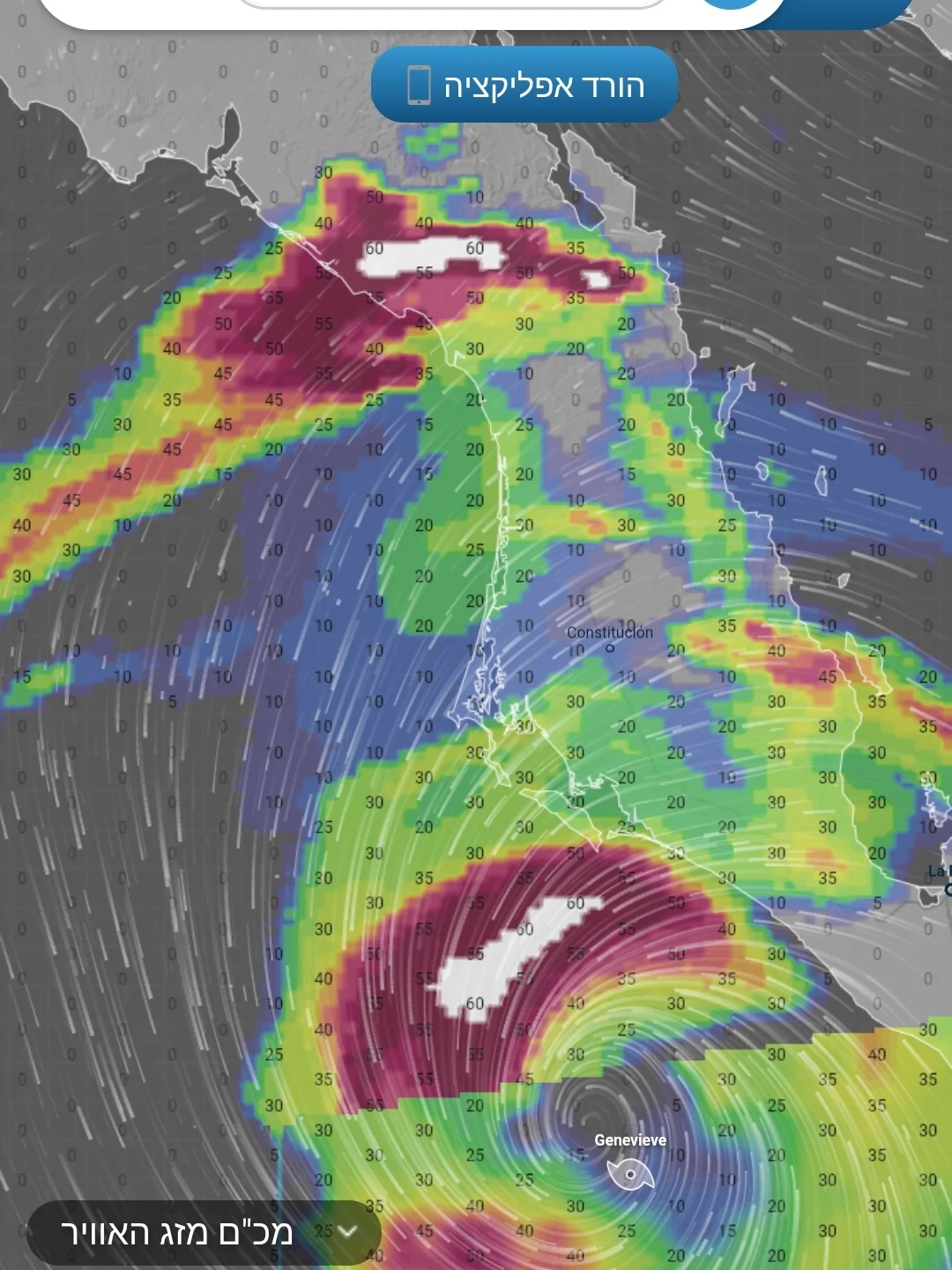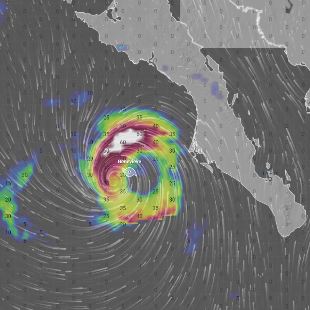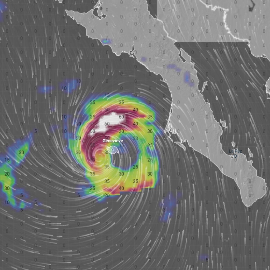 אנצל זאת כדי להזכיר את ''ג'נבייב'' שממשיך להיחלש ומוגדר כסופה טרופית חלשה אבל צפוי להמשיך לנוע צפון-מערב ולהתפוגג רק מול חופי לוס אנג'לס.