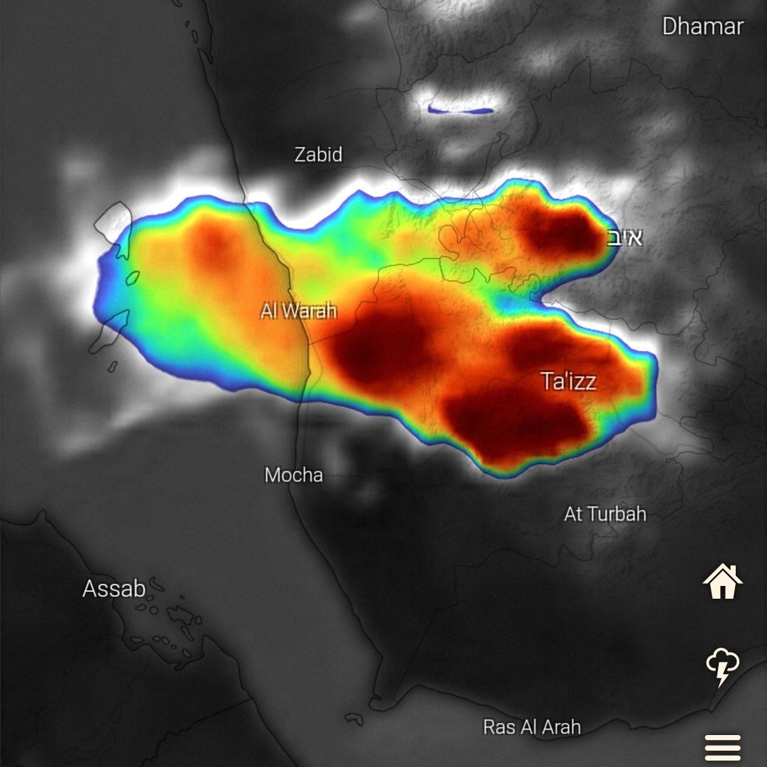 רצועת גשם חיצונית ורחוקה מאוד מהעין מורידה גשם בקצב של 60dbz שזה 200 מ''מ לשעה