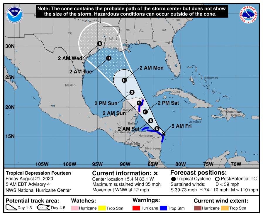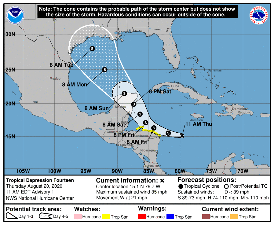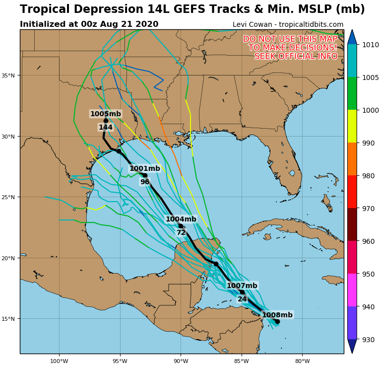 לגבי שקע 14 יש הרבה פחות הסכמה, עדיין לא יודעים לאן ילך בדיוק או באיזה עוצמה. כרגע מרכז ההוריקנים האמרקאי חושב שיהפוך להוריקן כאשר יפגש עם מקסיקו, ויהיה עוד פעם הוריקן כשיפגע בארה"ב.