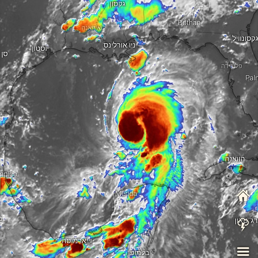 - כל עוד ''לאורה'' לא תיחלש משמעותית היא תוסיף הרבה כתום-אדום למפה מחר תום