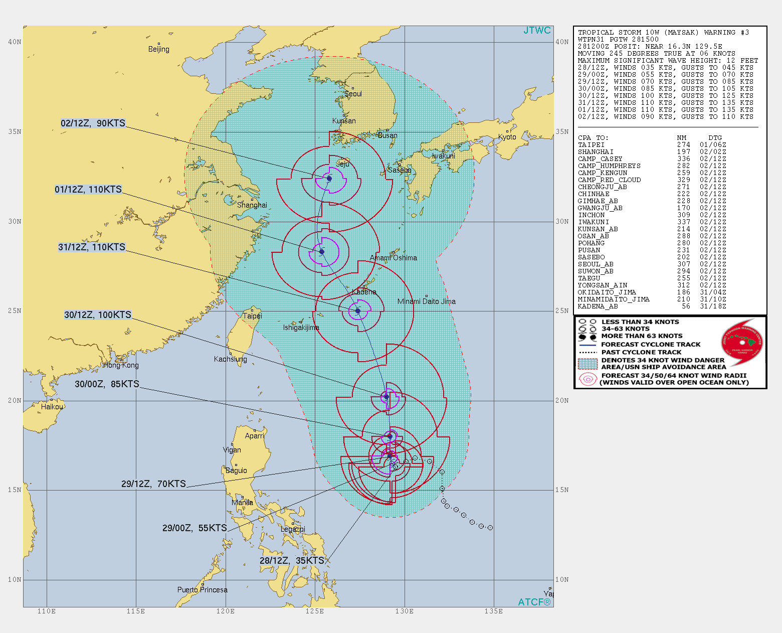 - כרגע התחזית היא ש-Maysak תגיע לעוצמה 3 חנוך א