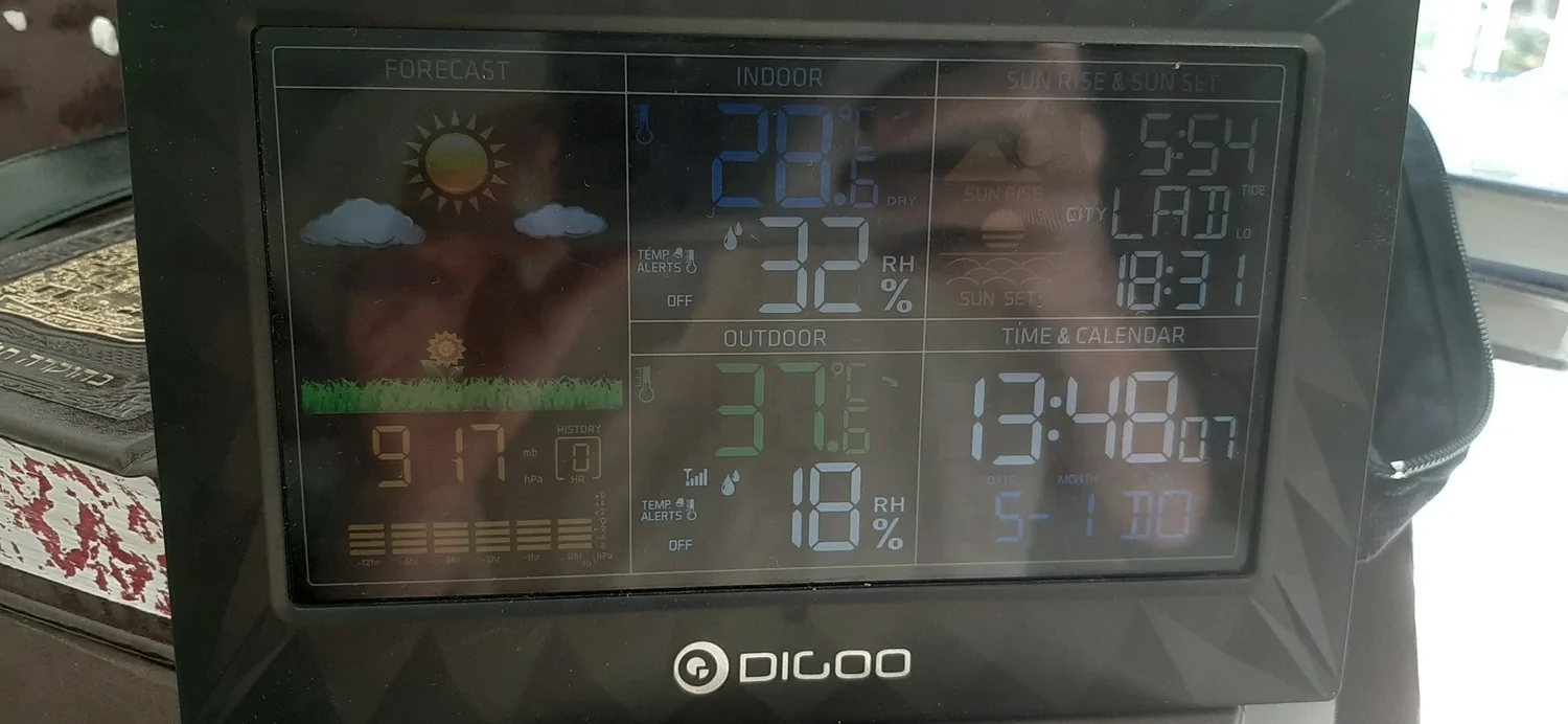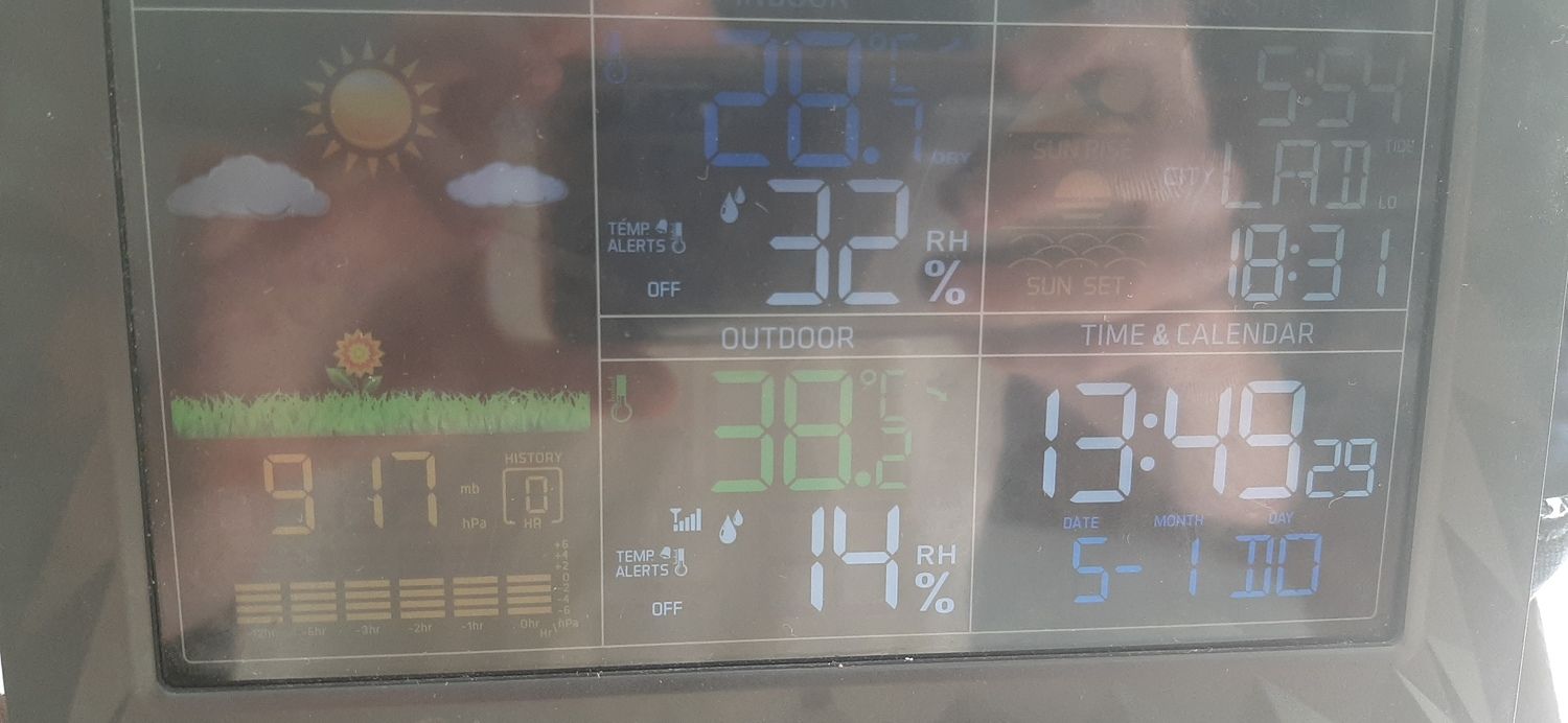 בוקר חם אחרי לילה לוהט.ארבע בבוקר 30 מעלות ו60% לחות.השיא אתמול קרוב ל47 מעלות והבוקר התחיל עים 26 מעלות.מעניין מה מצפה לנו היום