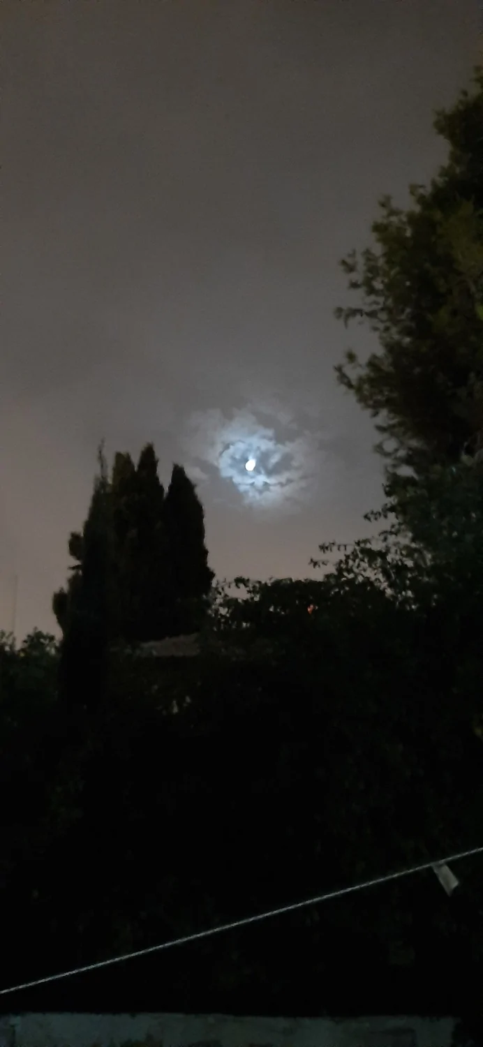 - תמונה מדהימה של הירח מבעד לענני הלחות. אכן לילה שני מעיק ומרקי במיוחד תום