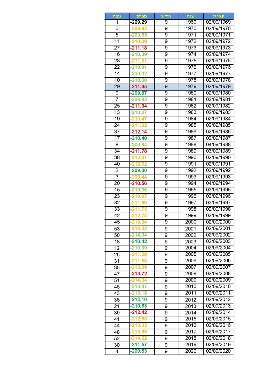 חשוב לציין שבטבלה מפורטים הנתונים מ-51 השנים האחרונות ולא 53