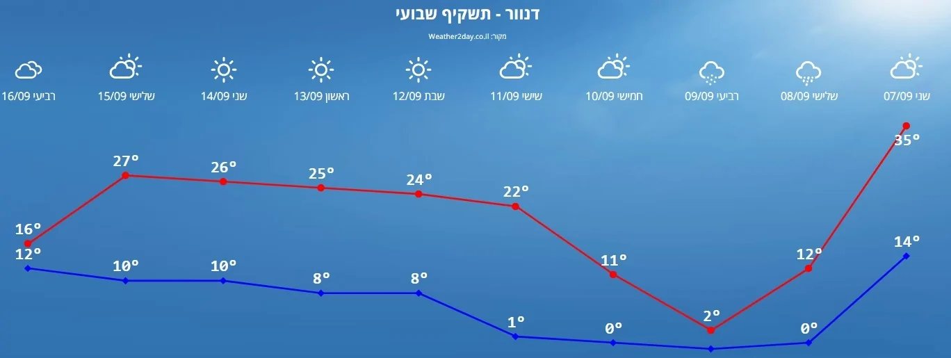 יום אחר עם מינימום של מינוס 17° עד מקסימום של 14°.