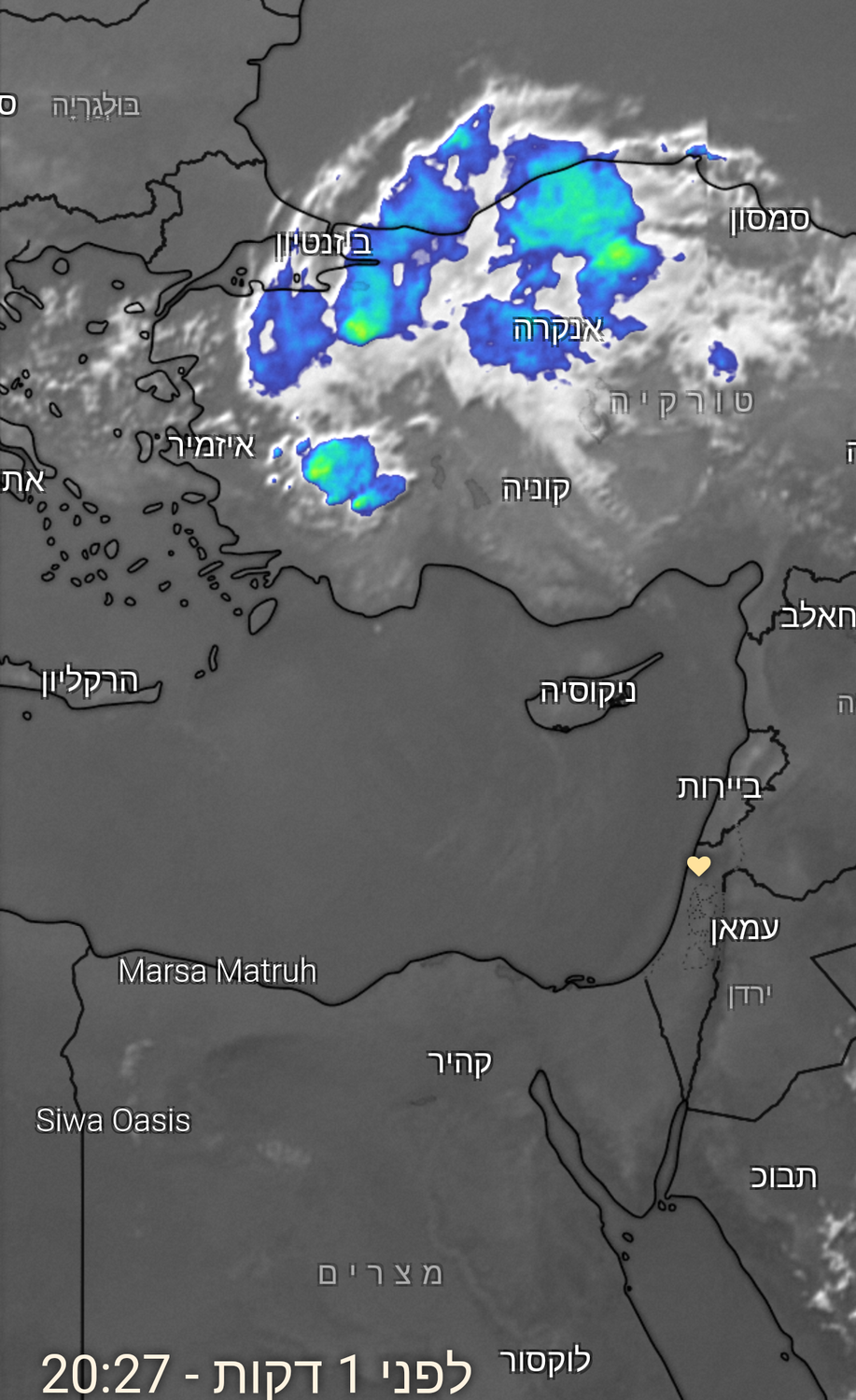 רואים בסוף הסרטון כמה טיפות גשם. מצרף תצ''ל אינפרא אדום עדכני מעל טורקיה
