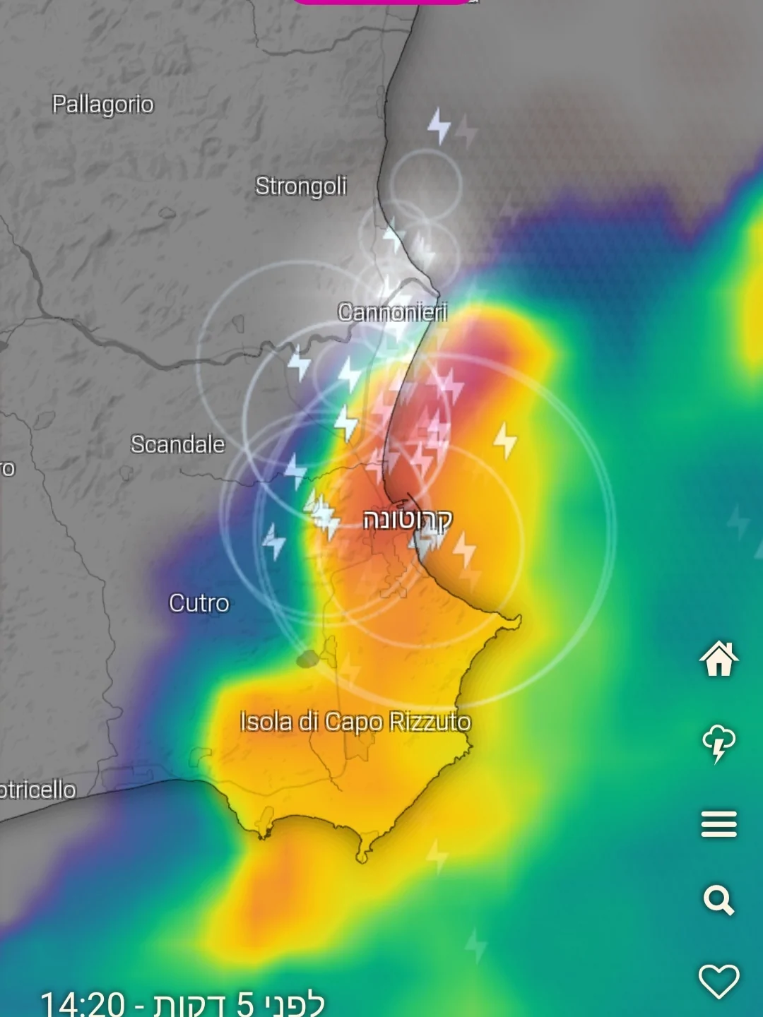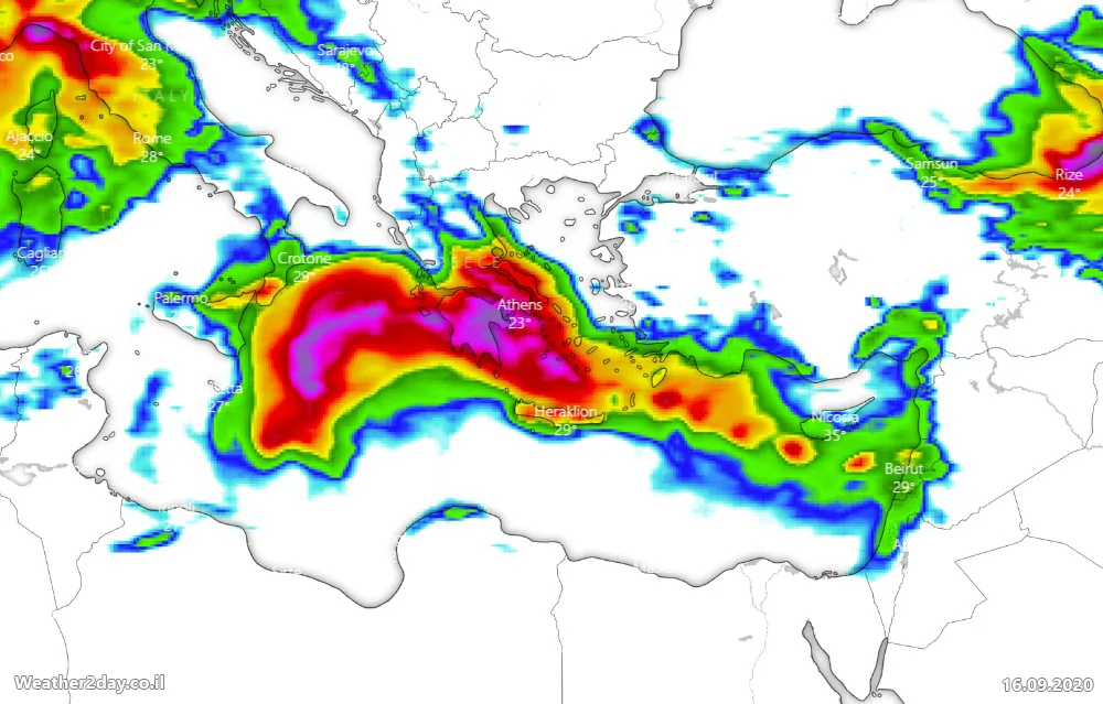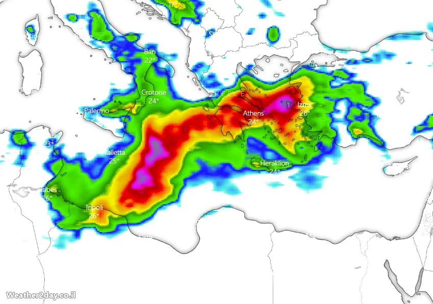 תשפיע בעיקר על יון ומערב טורקיה..ה"עיגול" יילך ויקטן עד שיגיע לגודל קטנטן לסופו בין קפריסין ללבנון