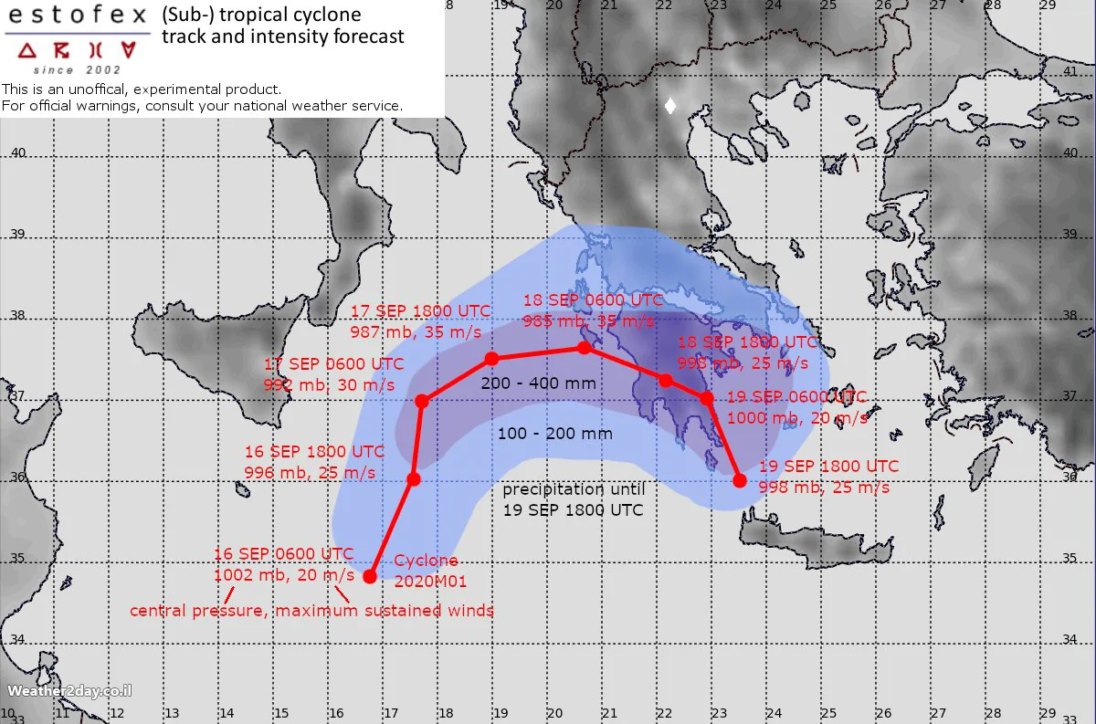 - מזג אוויר בעולם: סופת המדיקן בשם "Cassilda" (קסילדה) תתפתח במרכז הים התיכון Weather2day