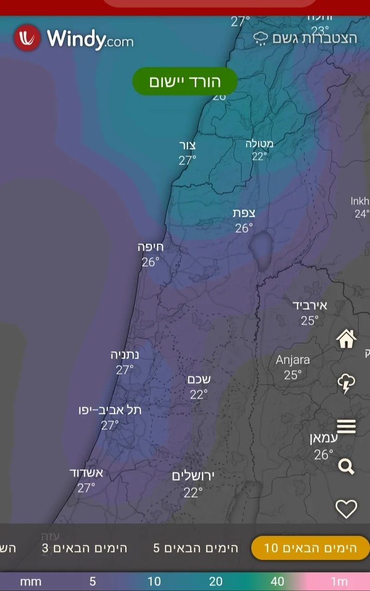 - נראה כי הצפי לגשמים בישראל התחזק רועי ס