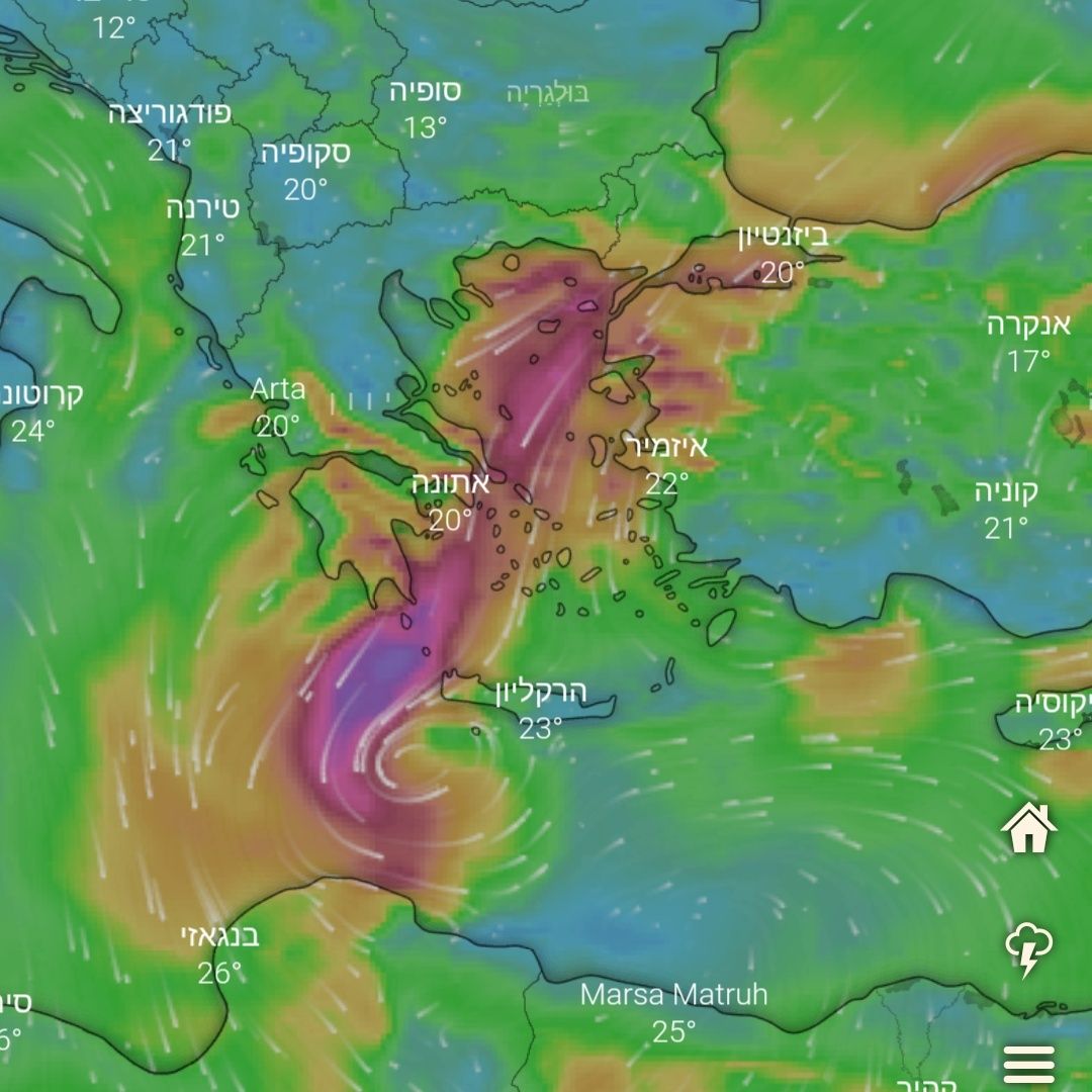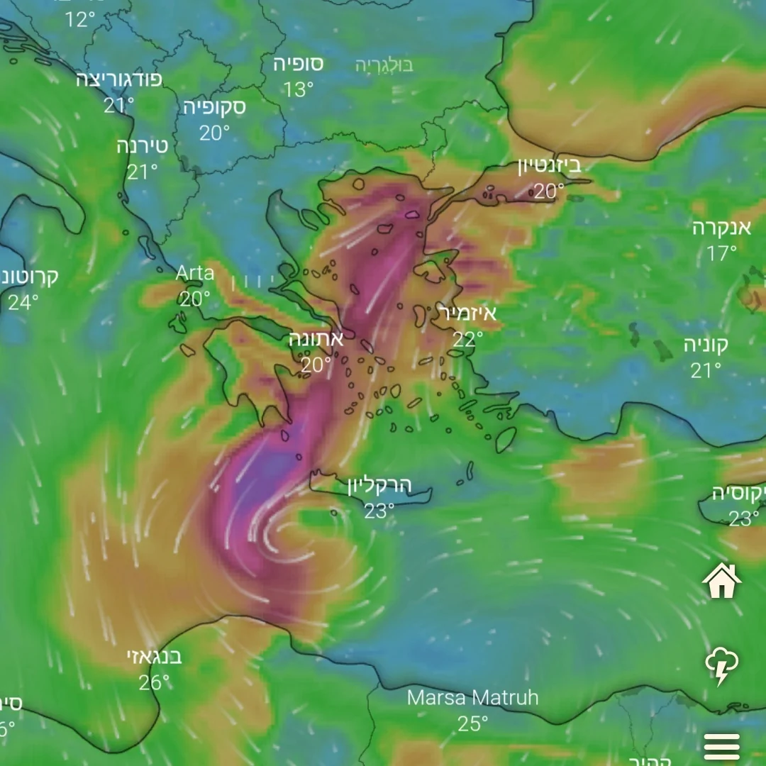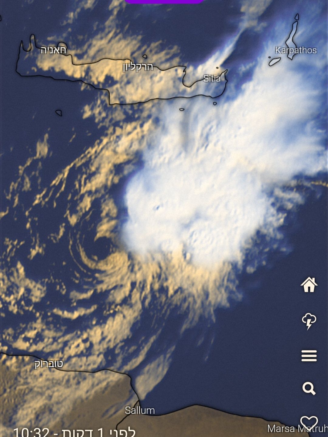 - מרכז הסופה כבר דרומית לכרתים חנוך א