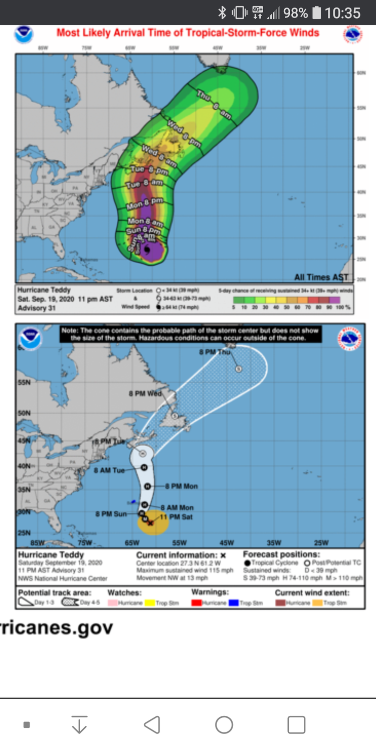 מצרף צפי ל''טדי'', באמת ניתן לראות שלפחות כרגע הוא ממש מדלג על ברמודה (סוטה מעט מזרחה) ואז ממשיך צפונה אבל לפי איך שזה נראה ואם הוא לא יתמזרח יותר עדיין הוא ישפיע מאד על ברמודה, גם אם לא ייכנס בהם ישירות