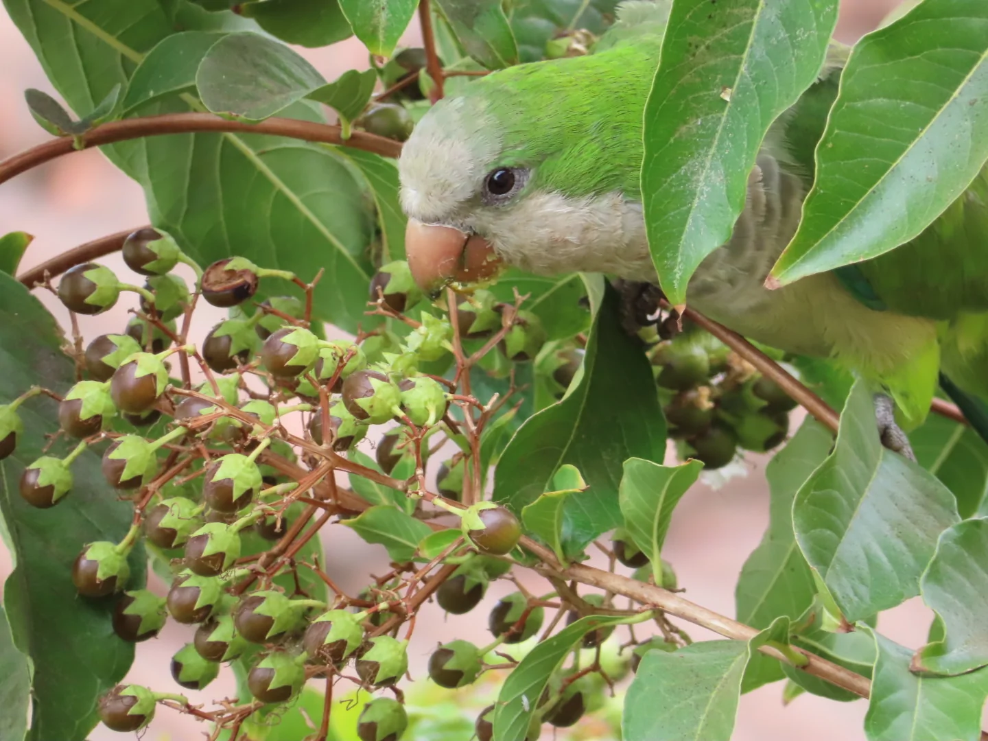 בתמונה תוכי נזירי ראש ירוק ואפור
