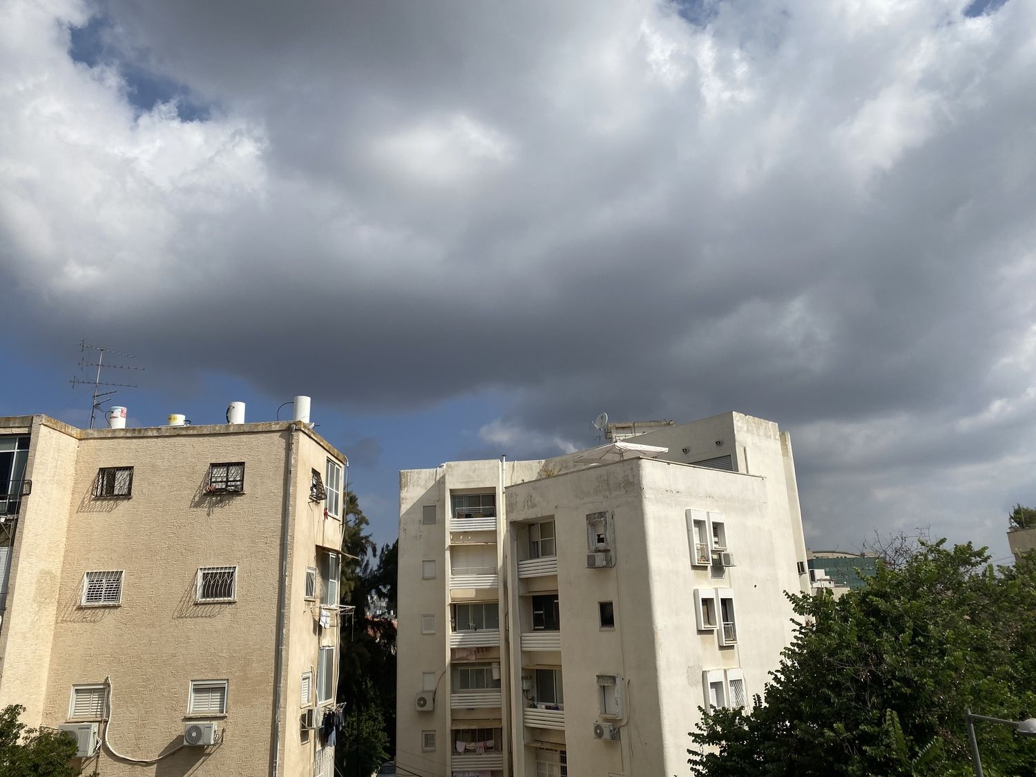 - קצת אווירה של גשם בחוץ, הרבה עננים גדולים ואפורים, אבל לא רציפים. איתן
