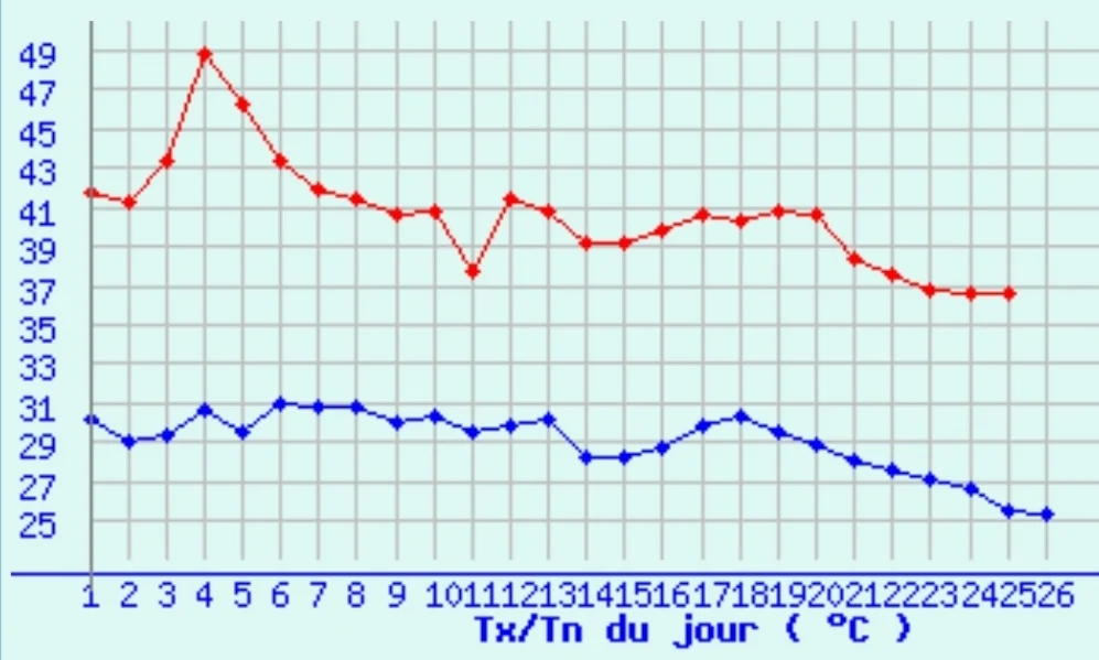 41° בלבד בבגדאד (בקיץ הטמפ' שם שברה שיא מוחלט מתחילת המדידות והגיעה עד כמעט 52°)