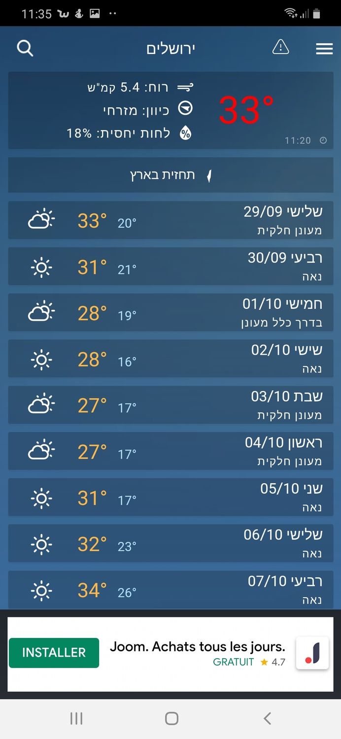 - 33 מעלות עם לחות 22% בירושלים אינדקס חום 32 בינוני חבקוק